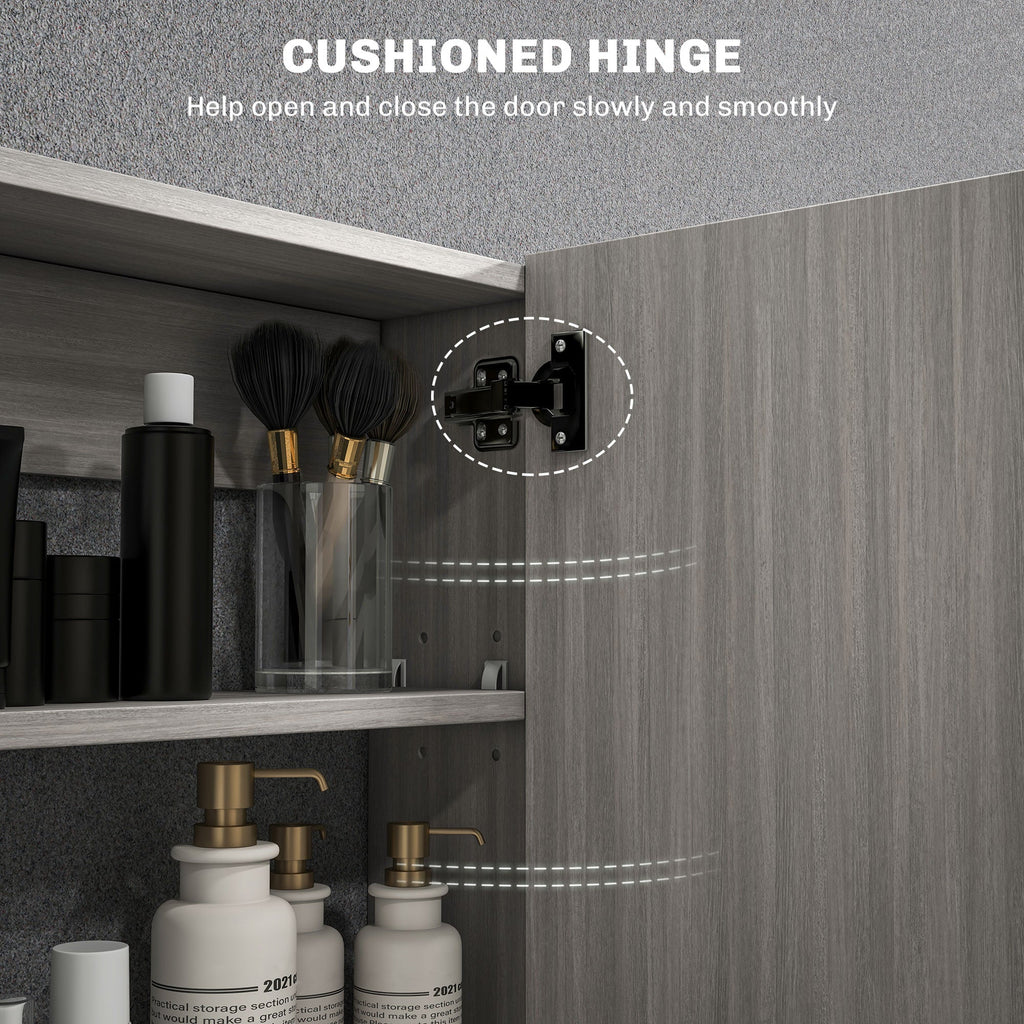 Maximize your bathroom space with this multi-functional mirrored cabinet, designed to keep your essentials organized while enhancing your daily routine. Featuring a sleek mirror on the outside, this cabinet serves as both a vanity mirror and a storage solution, eliminating the need for a separate mirror purchase. Inside, two spacious shelves provide ample storage for toiletries, beauty products, and other bathroom necessities, keeping them dry and neatly arranged. The upper shelf is adjustable with three fixed levels, allowing for customization to fit various-sized items. The double mirrored doors make grooming tasks like makeup application and shaving more convenient, while cushioned door hinges ensure quiet and smooth closing. Crafted from high-quality MDF with a water-resistant melamine finish, this cabinet is built for durability and easy maintenance. Its wall-mounted design saves valuable floor space, making it a stylish and practical addition to any bathroom. However, it is not recommended for installation on plaster walls.
