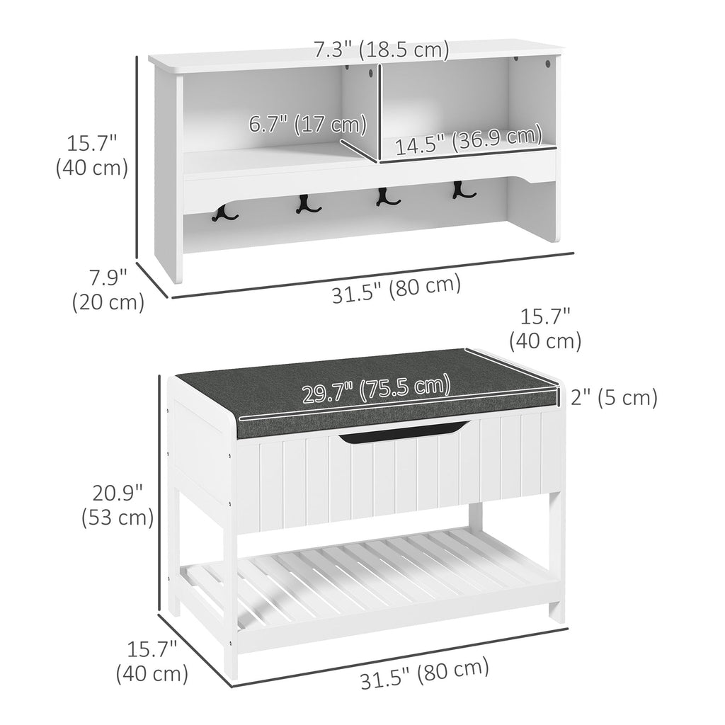 Shoe bench dimensions: 31.5"W x 15.7"D x 20.9"H (80 x 40 x 53 cm).