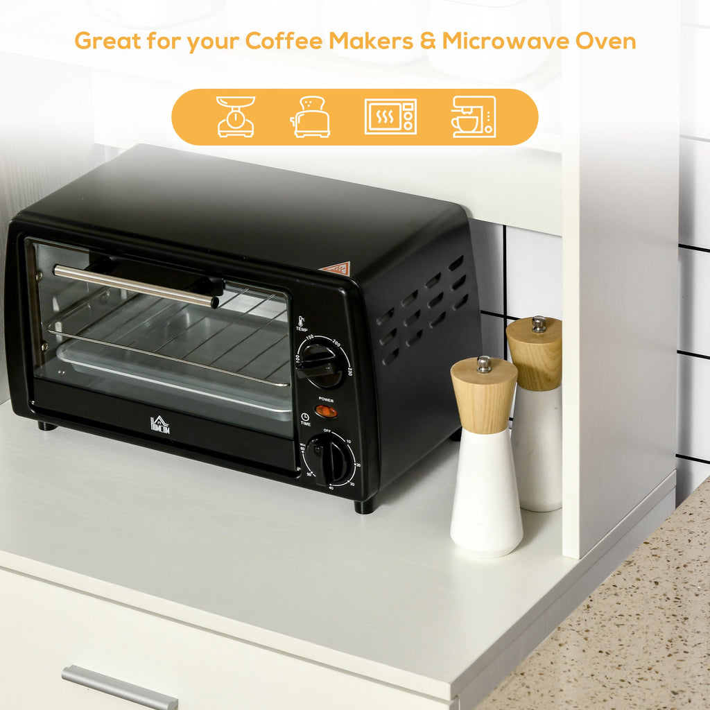 Spacious countertop provides room for a microwave, coffee machine, or small appliances