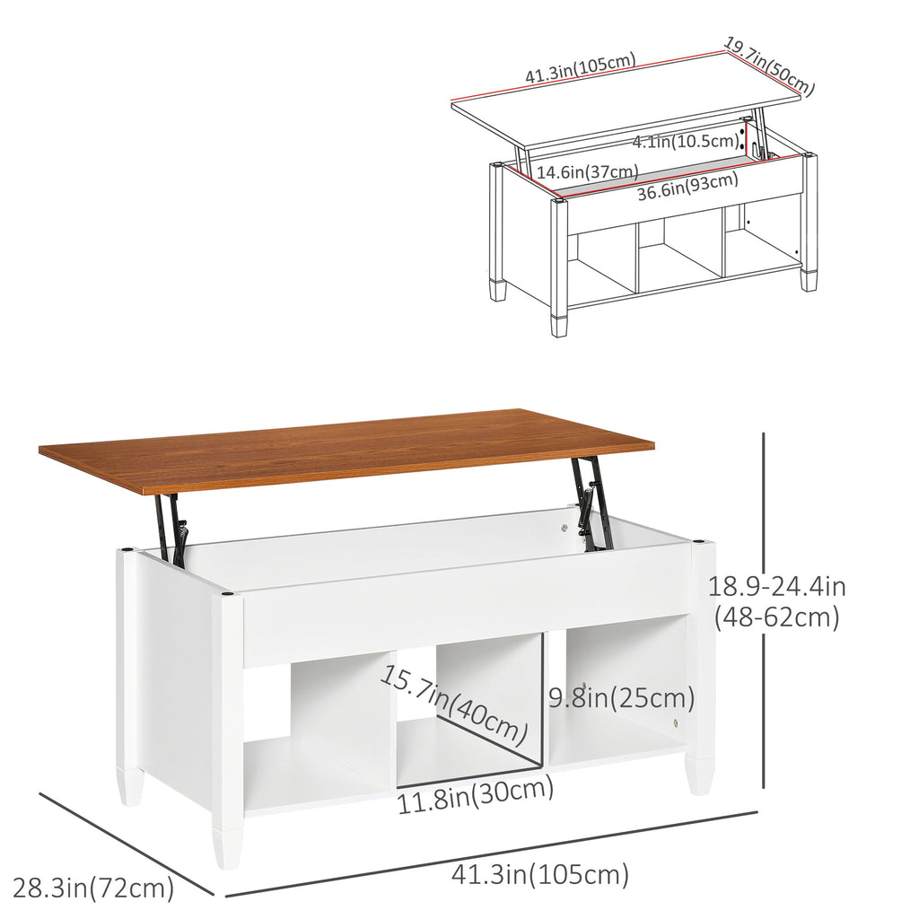 Upgrade your living space with this modern lift-top coffee table, designed for both style and functionality. The tabletop effortlessly lifts forward to create a convenient work or dining surface, supported by a quiet and secure lifting mechanism with a buffering function to prevent noise and ensure safety. Beneath the tabletop, a hidden storage compartment provides ample space for magazines, remote controls, and other essentials, while three open cube shelves keep blankets, books, or toys within easy reach. Crafted from durable particle board with a melamine finish, this coffee table is easy to clean and built for longevity. A sturdy frame, premium lifting hardware, and tapered square legs offer stability, while protective foam pads act as bumpers to safeguard the tabletop and reduce noise.