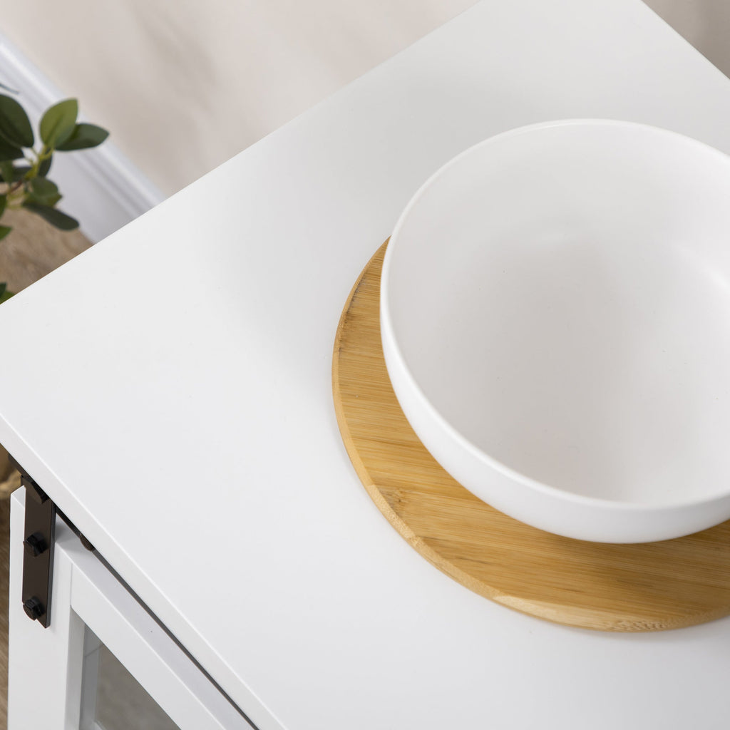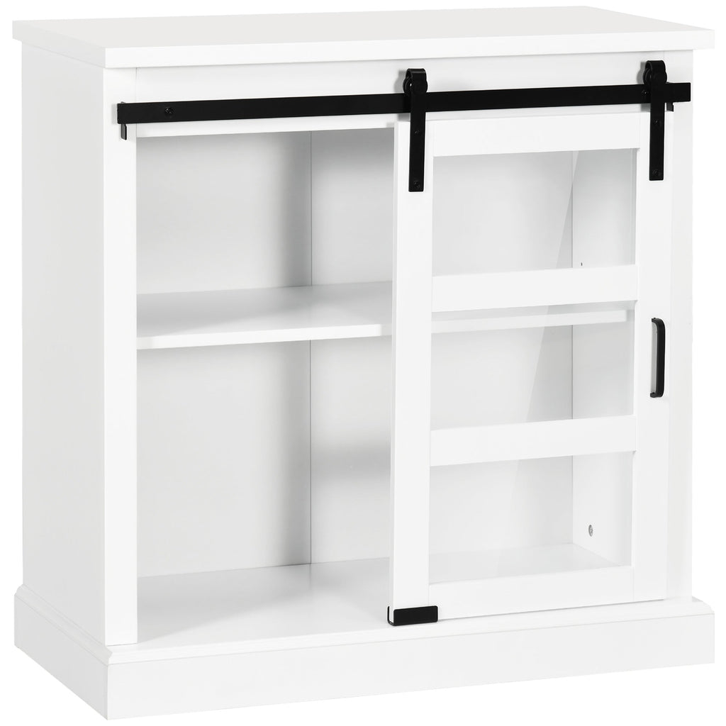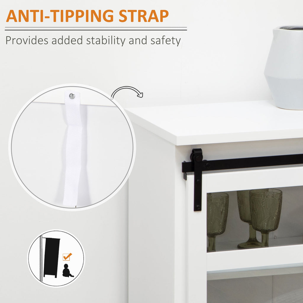 Add a touch of farmhouse charm to your home with this stylish and functional sideboard cabinet. Designed for both beauty and practicality, it features a spacious top surface for displaying decorative items or serving dishes while offering ample storage behind its sliding tempered glass doors. The adjustable inner shelf provides flexibility, allowing you to customize the storage space for cookware, tableware, or other essentials. The smooth-gliding barn-style sliding door not only enhances the rustic appeal but also saves space while providing easy access to both sides of the cabinet. Whether used in the dining room as a buffet, in the living room as a coffee bar, or even in the kitchen for additional storage, this versatile piece complements any modern farmhouse decor. Crafted from a durable MDF frame with sturdy metal hardware, it ensures stability and longevity. For added safety, an anti-tilt strap is included to secure the unit to the wall, making it a reliable addition to your home. Assembly is required.