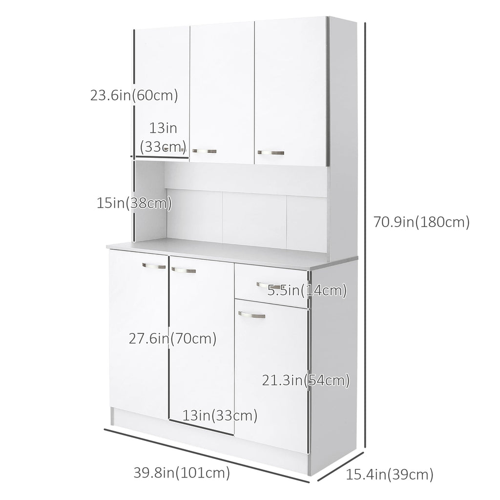 Struggling with limited cabinet space? This pantry storage cabinet is the perfect solution, offering all the extra storage you need while adding a stylish touch to your home décor. Designed to enhance both functionality and aesthetics, this spacious kitchen pantry features multiple cabinets for storing pots and pans, convenient drawers for napkins and towels, and an open middle section ideal for housing kitchen appliances such as a microwave or coffee maker. For added versatility, the adjustable shelves allow you to customize the space to accommodate taller items like pitchers and pasta containers. Whether placed in the kitchen, dining room, entryway, or even the garage, its modern design and classic color scheme seamlessly blend with any home interior. Prioritizing safety, this pantry cabinet includes an anti-tipping kit, allowing it to be securely attached to the wall for added stability and peace of mind.
