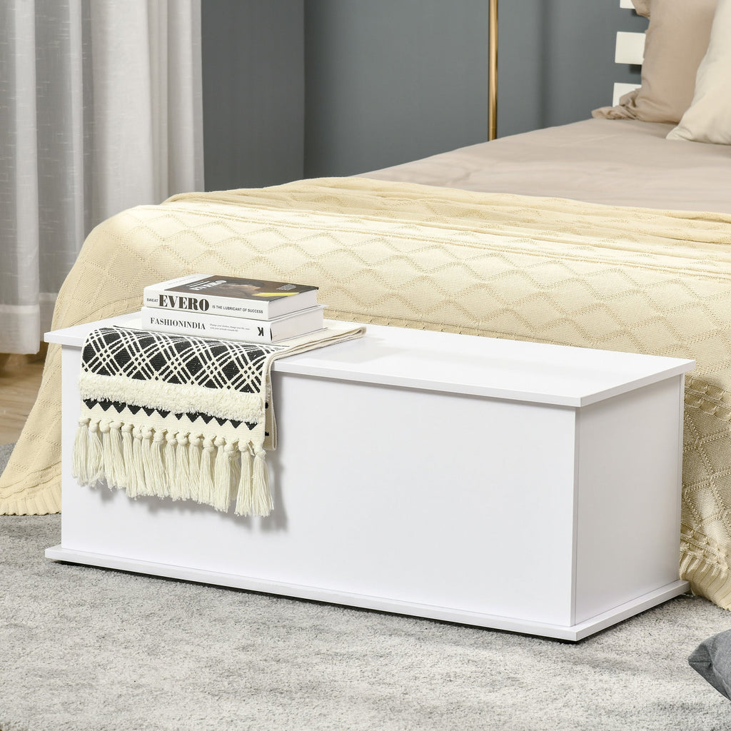 Enhance your home with this versatile and functional storage bench, designed to provide both seating and ample storage space. Featuring a flip-top seat and a spacious enclosed cabinet, this bench is perfect for organizing books, blankets, shoes, or other household essentials while keeping your space tidy. Built for durability, the sturdy construction supports up to 132 lbs (60 kg) on both the seat and storage compartment, ensuring long-lasting use. Equipped with non-slip foot pads, this storage bench protects your floors from scratches while providing stability. Its multifunctional design allows it to be used as a footstool, bed storage bench, tabletop, or compact storage furniture, making it a stylish and practical addition to any entryway, bedroom, or living room. Measuring 39.4 inches in width, 15.7 inches in depth, and 15.7 inches in height (100 x 40 x 40 cm), this storage trunk seamlessly blends functionality and elegance into any home setting. Assembly is required.