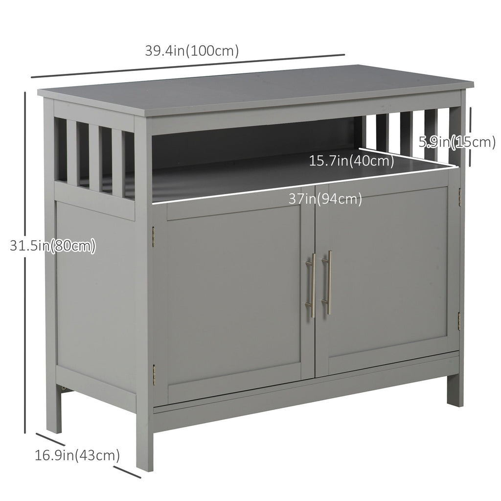Bring functionality and style to your home with this elegant and practical bar cabinet. Designed with aluminum handles and magnetic doors, this storage unit offers both convenience and sophistication. The spacious design features an open shelf for displaying essentials or decorative items, while the adjustable interior shelf provides three height options to accommodate different-sized items with ease. Constructed from durable MDF board with a specially treated surface, this kitchen storage cabinet is built for everyday use and effortless maintenance. Its versatile design allows it to function as a console cabinet in the hallway, a stylish sideboard in the dining room, or a coffee station in the living room, making it a multipurpose addition to any home. Measuring 39.4 inches in width, 16.9 inches in depth, and 31.5 inches in height (100 x 43 x 80 cm), this buffet cabinet offers a total weight capacity of 132 lbs (60 kg), ensuring stable and secure storage for all your essentials.