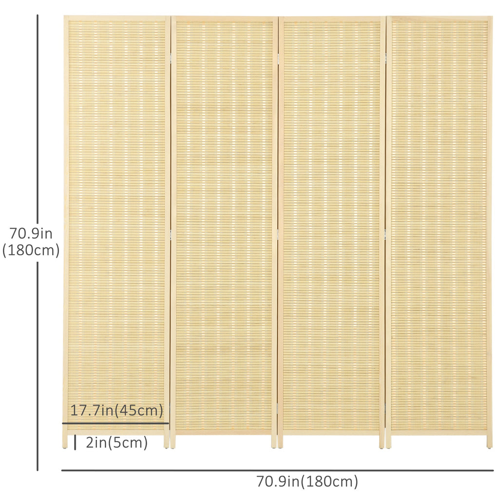 Enhance your living space with this stylish and functional 4-panel room partition screen, designed to provide instant privacy wherever needed. Whether you want to divide a large room, create a cozy enclosed area, or add a decorative touch to your home, this folding screen is the perfect solution. The hand-woven bamboo rattan design, accented with rose gold and silver thread, brings a natural yet elegant aesthetic to any living room, bedroom, or home office. Constructed with a sturdy solid wood frame and durable metal hinges, this room divider ensures long-lasting stability while allowing air circulation for a comfortable environment. When not in use, the foldable design makes it easy to move and store in compact spaces. With no assembly required, this privacy screen is ready to use straight out of the box, making it a hassle-free and stylish addition to your home.