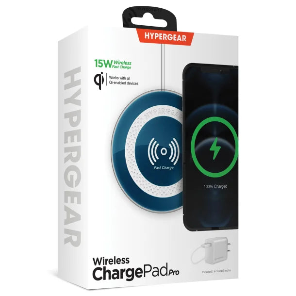 The HyperGear® ChargePad Pro 15-Watt Wireless Fast-Charger Pad (Blue) offers a high-speed, cable-free charging solution for your Qi-enabled devices. With 15 watts of power, this sleek, modern charging pad provides fast wireless charging for smartphones, including iPhones, Samsung Galaxy, and other Qi-compatible devices. The premium design with a stylish blue finish complements any workspace or home setup, while the non-slip surface ensures your device stays in place during charging. Featuring advanced safety technology, it delivers efficient, secure charging without the need for messy cords.