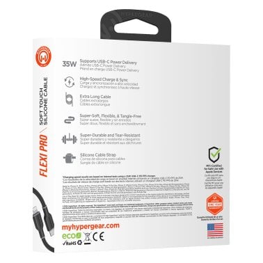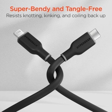 HyperGear® Flexi Pro USB-C® to Lightning® Soft-Touch Silicone Fast Charge and Sync Cable, 10-Ft. (Black)