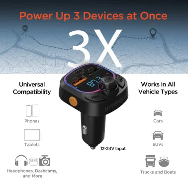 Upgrade your driving experience with the HyperGear® IntelliCast Road FM Transmitter Car Charger (Model 15857), a versatile and compact solution for in-car entertainment and charging. This innovative device seamlessly integrates with your vehicle’s audio system via FM transmission, allowing you to stream music, calls, and navigation instructions wirelessly through your car's radio. Featuring dual USB charging ports, this device offers the convenience of charging multiple devices simultaneously while on the go. The sleek black design complements your car's interior, and the easy-to-use controls ensure a hassle-free setup. Perfect for road trips, commutes, or everyday drives, the IntelliCast Road FM Transmitter provides both entertainment and functionality with every journey.