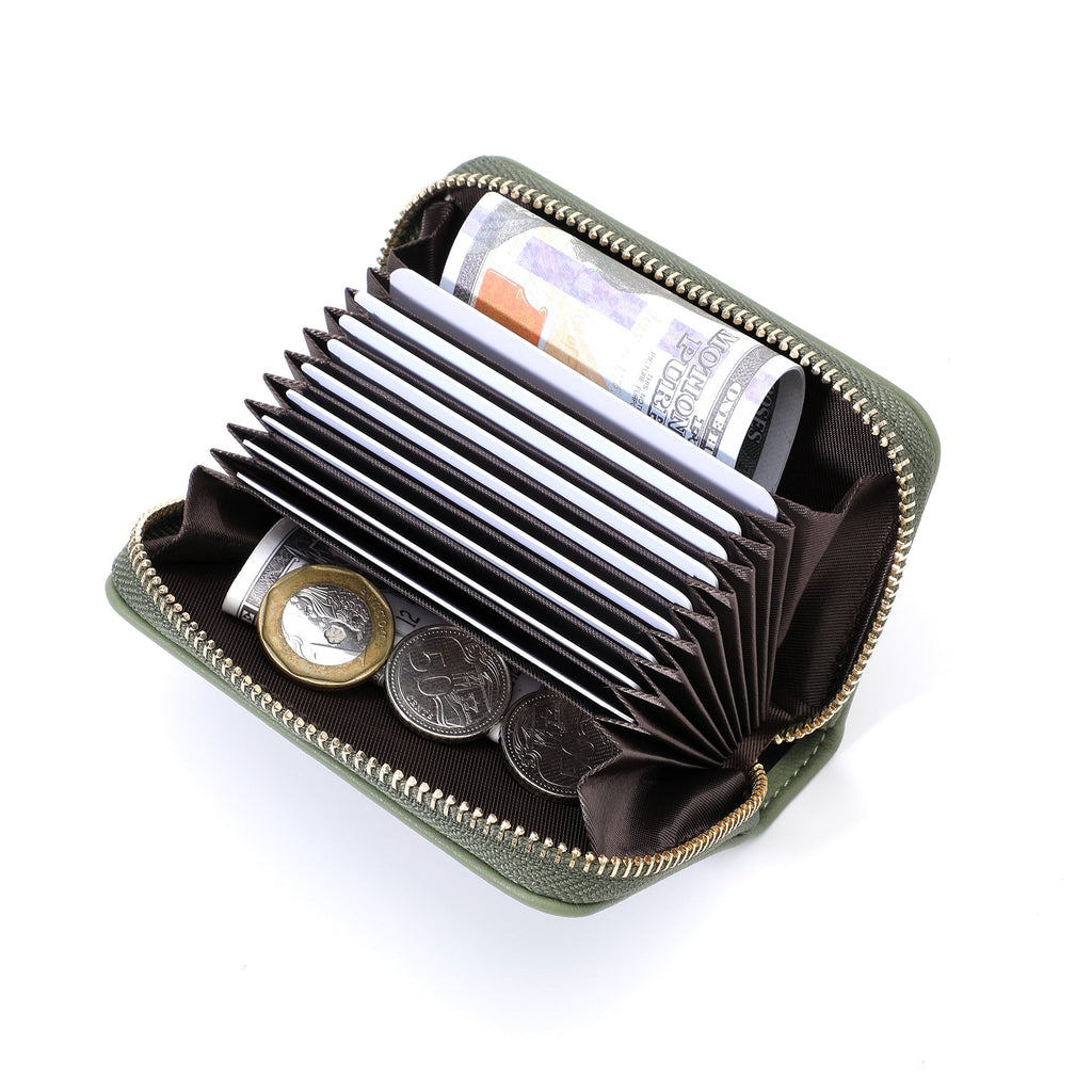 The Iconic Palm Wallet combines sleek design with practical functionality. Crafted from premium vegan leather, it features organized compartments for credit cards, compact storage, gold-tone hardware, and RFID protection—available in bold colors for a stylish and secure accessory.