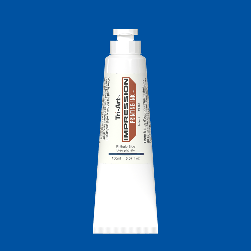 Impressions Block Printing Ink in Phthalo Blue is a water-based ink perfect for block printing with linoleum and wood, as well as screen printing. It provides smooth application, excellent coverage, and a rich, vibrant blue colour. Use directly from the tube or modify with Clear Gloss Modifier to extend, increase transparency, or add sheen. Consistency can also be adjusted with gel medium, polymer mediums, or water, making it versatile for a variety of artistic printing projects.