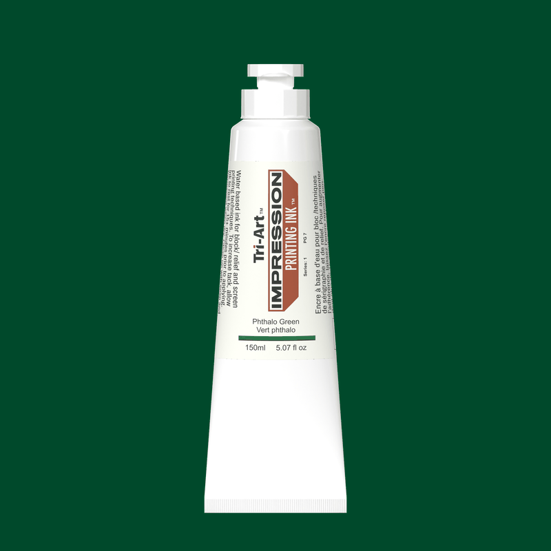Impressions Block Printing Ink in Phthalo Green is a water-based ink ideal for block printing with linoleum and wood, as well as screen printing. It provides smooth application, excellent coverage, and a vibrant, deep green colour. Use straight from the tube or modify with Clear Gloss Modifier to extend, increase transparency, or add sheen. Consistency can also be adjusted with gel medium, polymer mediums, or water for versatile artistic printing projects.