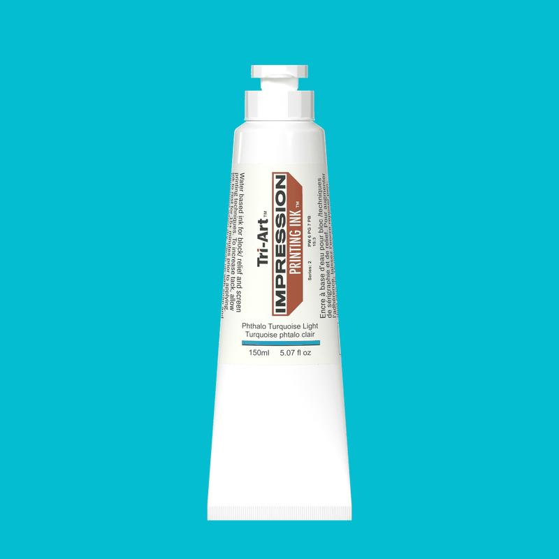 Impressions Block Printing Ink in Turquoise is a vibrant, water-based ink designed for block printing on linoleum and wood, as well as screen printing. Known for its smooth handling and strong coverage, this bold turquoise shade brings refreshing colour and clarity to any print. Use directly from the tube or mix with the Clear Gloss Modifier to extend the ink, increase transparency, or enhance sheen. Adjust the consistency effortlessly using gel medium, polymer mediums, or water to suit your creative needs.