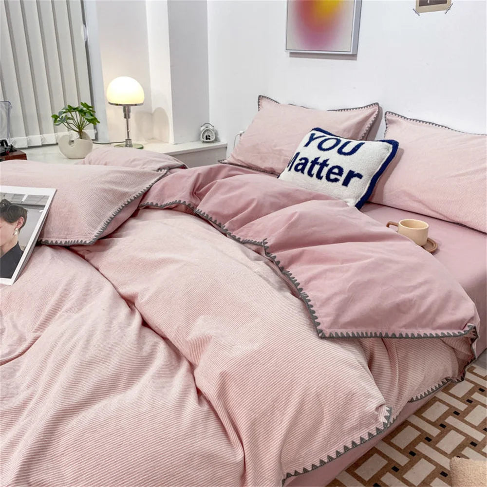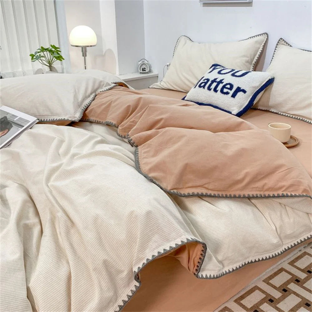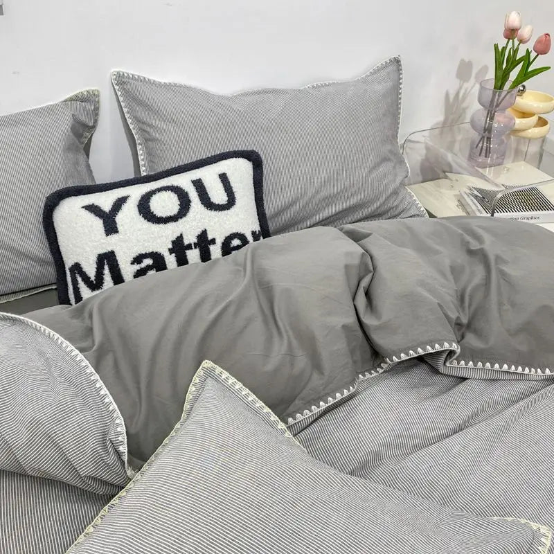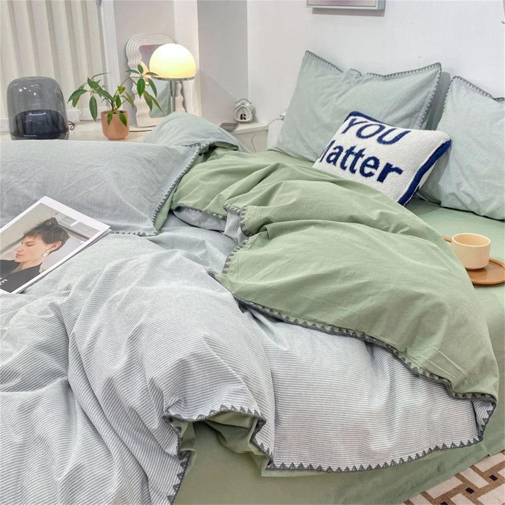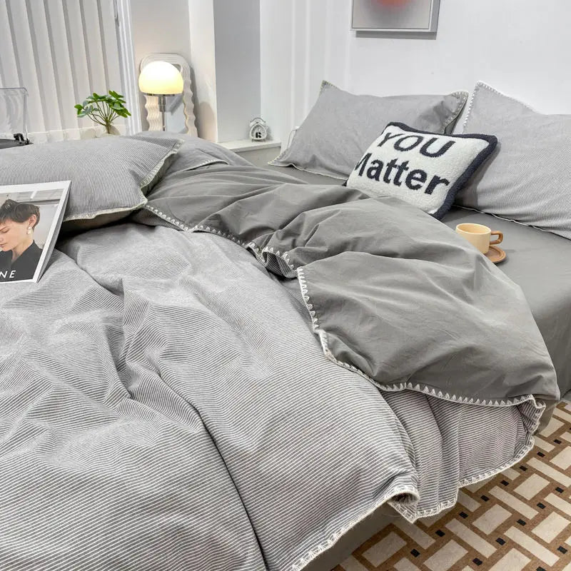 Elevate your bedroom with the INS Nordic Style Bedding Set. This chic set features a stripe comforter cover, matching pillowcase, and sheet, all crafted from washed cotton for a soft, breathable feel. Designed in a modern Nordic style, it complements both single and full-size beds. The washed cotton material provides durability and a relaxed, lived-in look. Perfect for adding a touch of elegance and comfort to your bedroom decor.