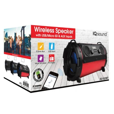 The IQ Sound® IQ-1525BT Wireless Bluetooth® Speaker combines sleek design with impressive sound quality to enhance your music experience. Perfect for home use or on-the-go entertainment, this portable speaker features Bluetooth® connectivity, allowing effortless pairing with smartphones, tablets, and other devices. Its compact, lightweight design and high-performance audio output make it the ideal companion for parties, picnics, or simply relaxing at home. Experience convenience and style with the black IQ-1525BT, designed to deliver quality sound wherever you are.