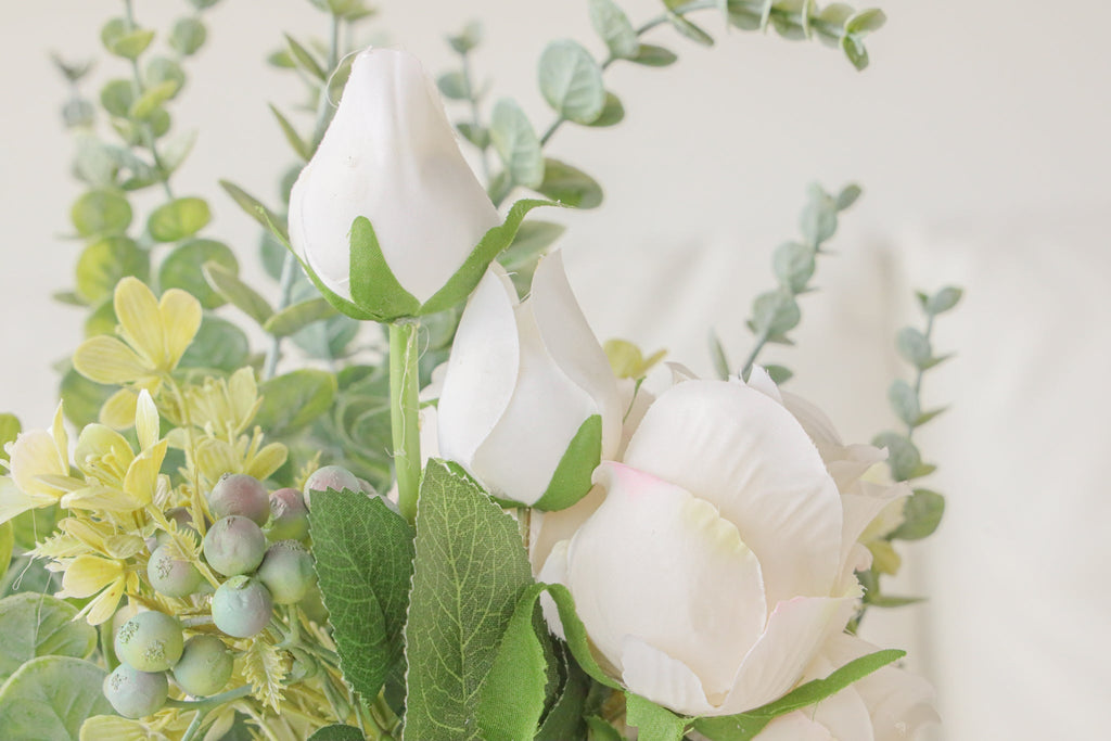 Bring rustic charm to your home with the Jaco Artificial Flower Bouquet 20"x8". Crafted from premium silk and plastic, this farmhouse-inspired bouquet mimics real flowers with hand-painted detail. Perfect for vases in kitchens, living rooms, or special occasions, it adds natural beauty without any upkeep. Planter not included.