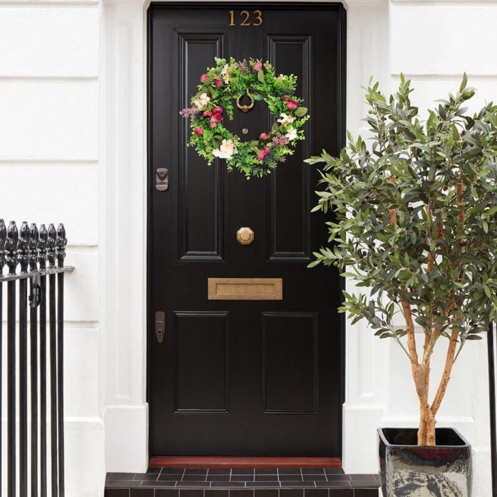 Handcrafted wreath with realistic multi-holiday flowers and foliage