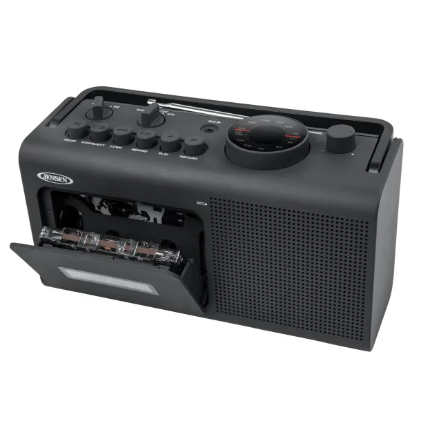Relive the nostalgia of cassette tapes with the JENSEN® MCR-250 Portable Cassette Player/Recorder, complete with AM/FM radio. This versatile device lets you play your favorite cassettes, record new ones, and enjoy live radio broadcasts. Compact and portable, it’s ideal for on-the-go listening or stationary use. The intuitive controls and built-in microphone make recording quick and effortless, while its retro-inspired design brings a touch of vintage charm to any setting. Whether you’re rediscovering old mixtapes or tuning into local radio stations, the JENSEN® MCR-250 combines classic functionality with modern reliability.