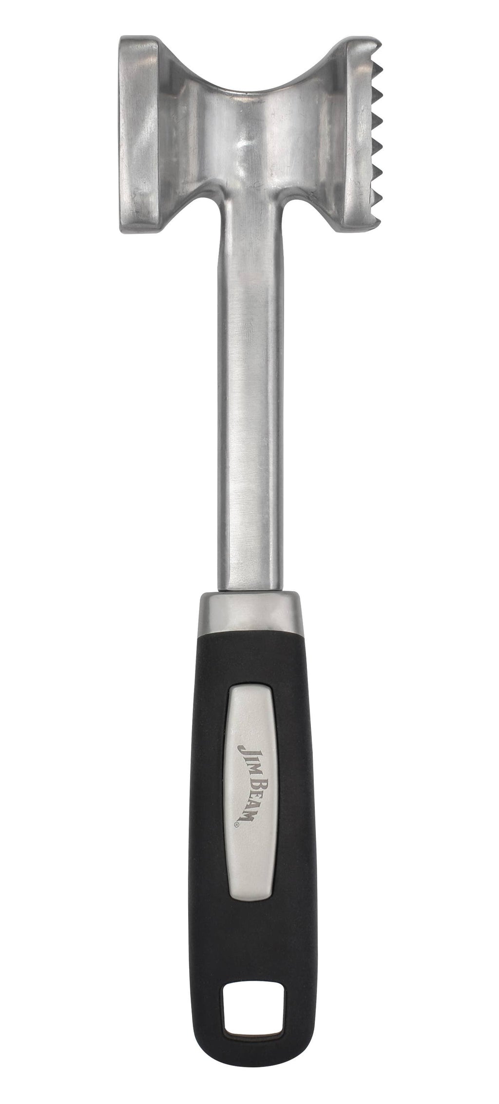 The Jim Beam Dual Side Meat Tenderizer is a versatile kitchen tool designed for home cooks and grilling enthusiasts. Crafted from heavy-duty zinc alloy, it effortlessly tenderizes tough cuts and flattens cutlets, ensuring juicy, evenly cooked meals. Its ergonomic handle and durable construction make meal prep easier and more efficient, perfect for everyday cooking or special occasions.