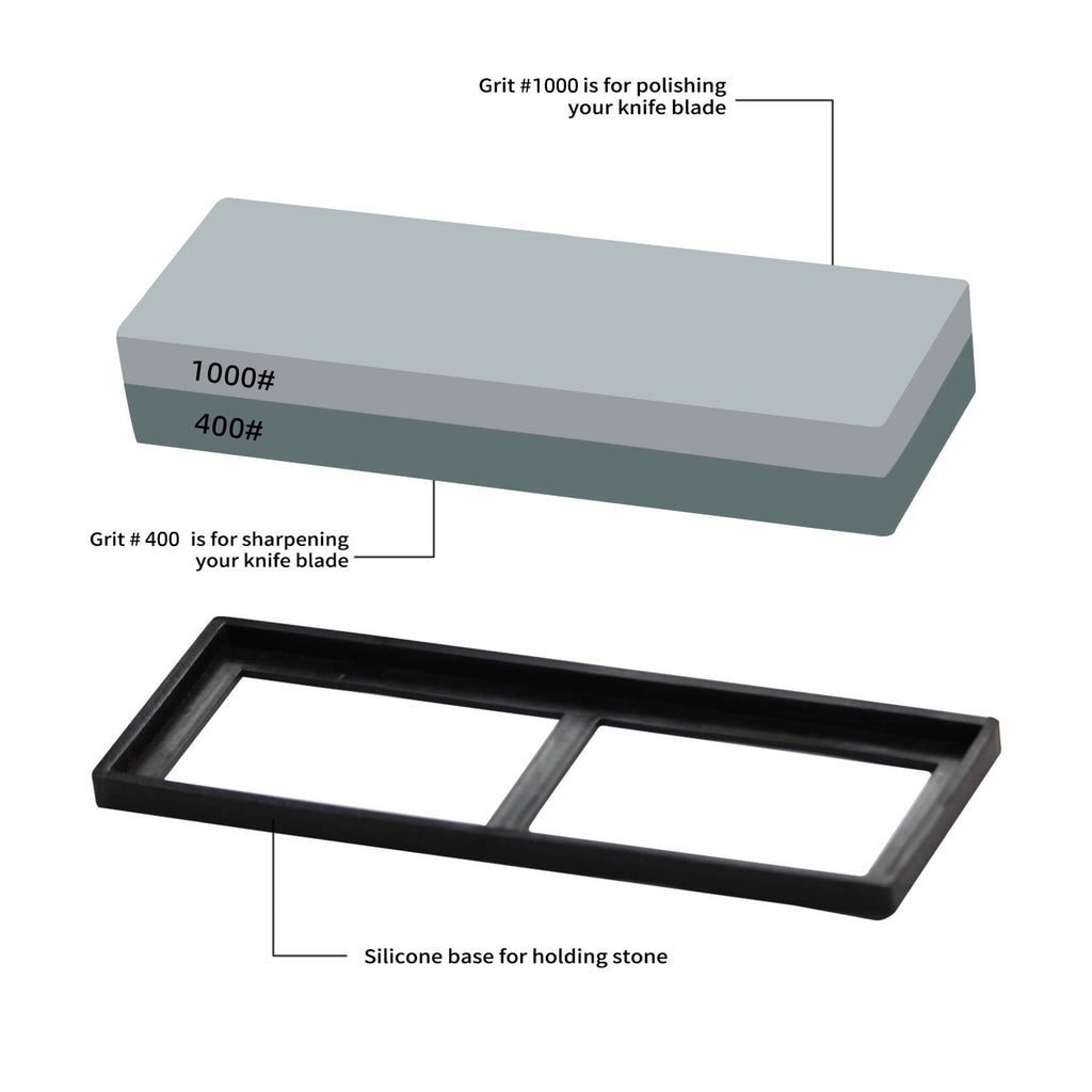 Dual-sided design: 400-grit for sharpening, 1000-grit for honing