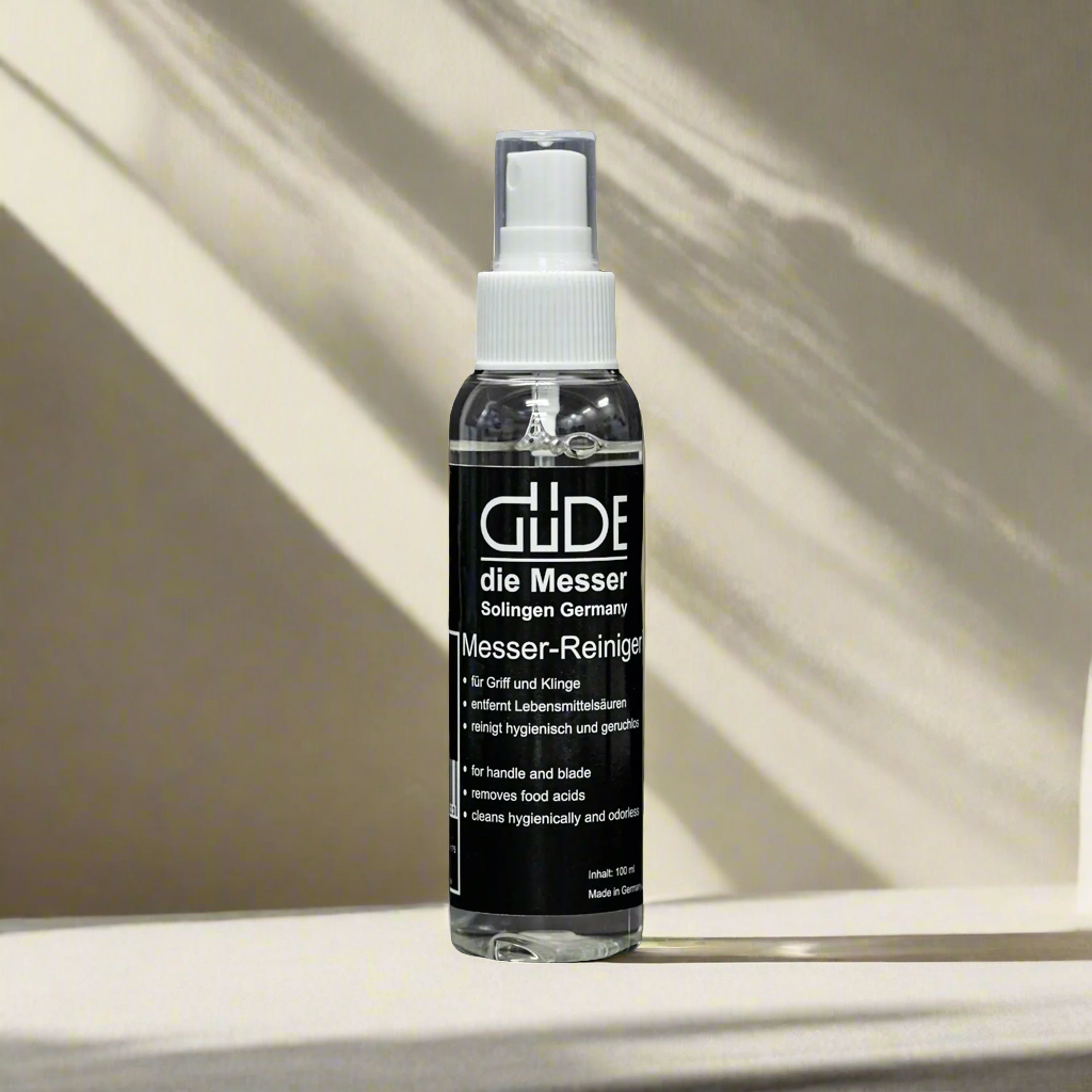 Ensure the longevity and performance of your knives with the GÜDE Knife Cleaner, a premium cleaning solution designed to protect both blades and handles. Prompt and proper cleaning prevents corrosion from food acids and keeps knife handles free of grease, dirt, and residue. With a pH of 9.5, this odorless cleaner safely removes acidic contaminants, maintaining hygiene without affecting the taste or aroma of your ingredients. Suitable for professional chefs and home cooks, it’s an essential tool for preserving your knife’s appearance and functionality.