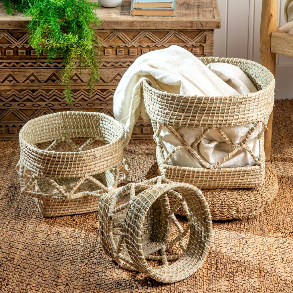 Bring natural charm and practical storage to your home with the Laila Basket Set. Crafted from durable seagrass, these baskets combine rustic elegance with everyday functionality. Perfect for organizing household items, displaying decor, or adding a cozy touch to any room, each basket is lightweight yet sturdy for versatile use.