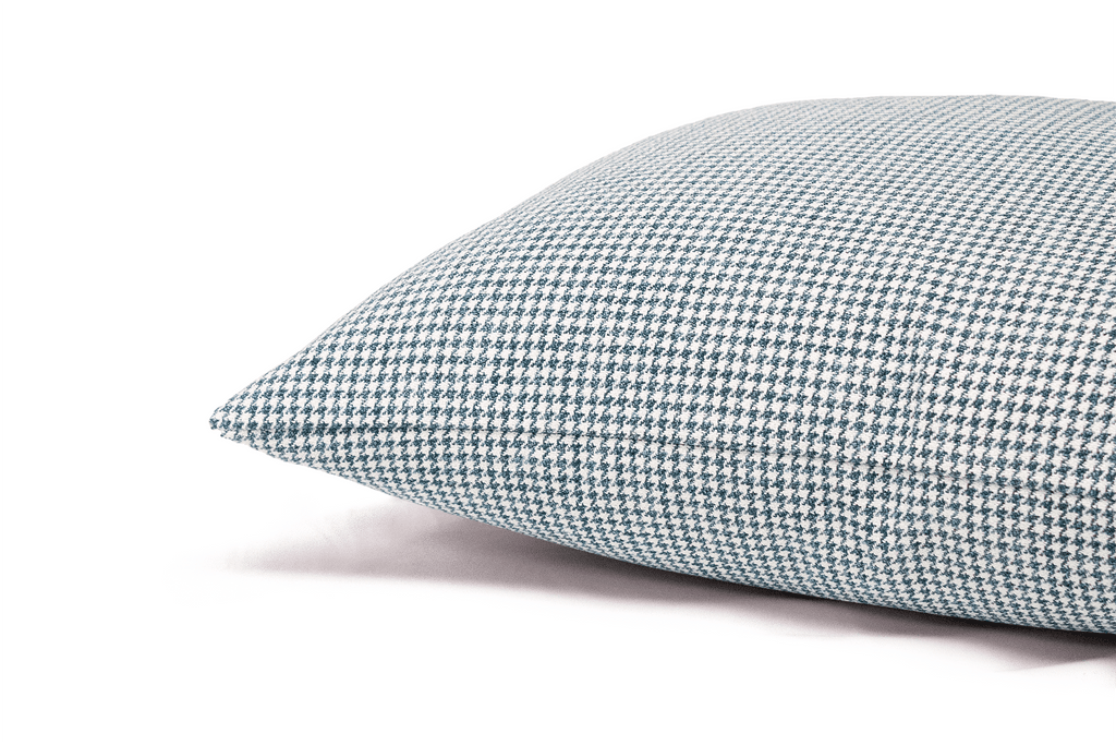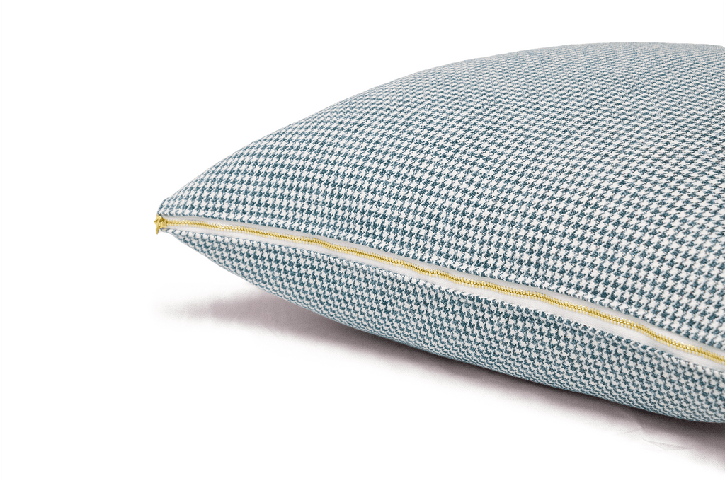 Make a stylish statement with the Lake Houndstooth Cushion Cover, featuring a classic houndstooth pattern in rich blue tones with a striking gold-accent zipper. This elegant piece adds sophistication and comfort to any sofa, armchair, or bed. Crafted from a durable woven blend of polyester and acrylic, it’s designed for both texture and longevity. Hand-made in Canada and available only while supplies last. Cushion insert sold separately.