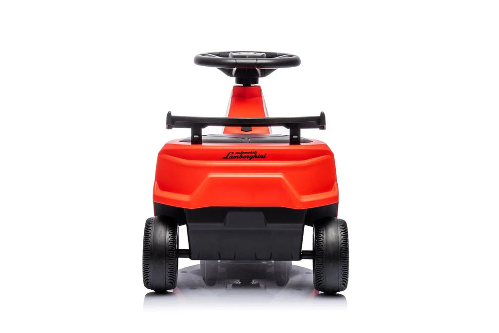 Let your child ride in style with the Lamborghini Swing Car, perfect for kids aged 3 and up. This 1-seater ride-on features flashing PU+TPE tires, LED lights, under-seat storage, and a music control button for endless fun. Durable PP construction, swivel front wheels, and adjustable footrests ensure a comfortable, safe, and engaging experience indoors or outdoors.