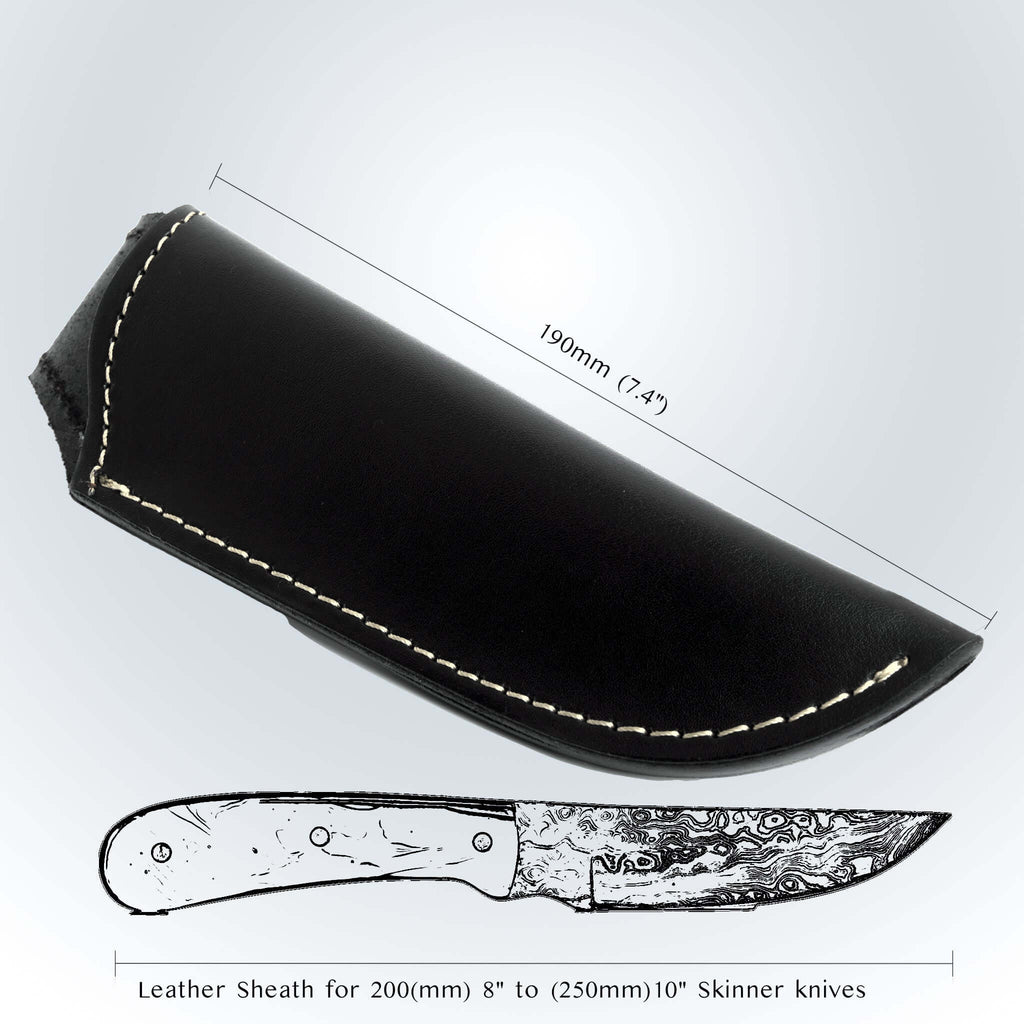 The Premium Leather Sheath for Skinner Knife provides secure protection and classic style for your blade. Crafted from high-quality genuine leather, this sheath safeguards your knife from damage, moisture, and abrasion while offering a reliable and traditional method for carrying it in the field. Designed to fit most standard skinner knives, the sheath features durable stitching and a secure fit, ensuring your knife stays firmly in place during outdoor activities. Its timeless design adds elegance to your hunting or utility gear, combining functionality with style.