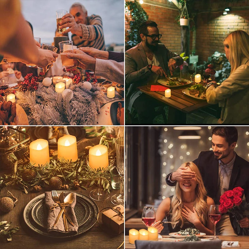 Elevate your Halloween and home décor with the LED Candles with Flickering Flame. These stylish electric candles feature a realistic flickering flame effect, adding a warm ambiance to your space. Equipped with a timer and remote control, they offer convenience and versatility, making them perfect for any occasion—from spooky Halloween parties to cozy evenings at home. USB rechargeable, these tealights are eco-friendly and eliminate the need for batteries, ensuring long-lasting use.