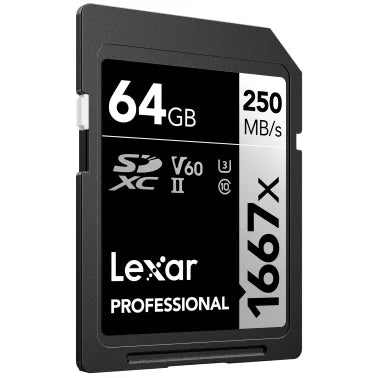 The Lexar® Professional SILVER Series 1667x SDXC™ UHS-II Card (64 GB) delivers exceptional performance and reliability for photographers, videographers, and creative professionals. With 1667x (250MB/s) transfer speeds, this card enables ultra-fast data transfers, allowing you to capture and transfer high-quality photos, Full HD, and 4K videos without delay. The 64 GB storage capacity provides ample space for large files, making it ideal for long shoots and creative projects. Backed by UHS Speed Class 3 (U3) technology, it supports advanced recording requirements and ensures smooth performance across cameras and devices.