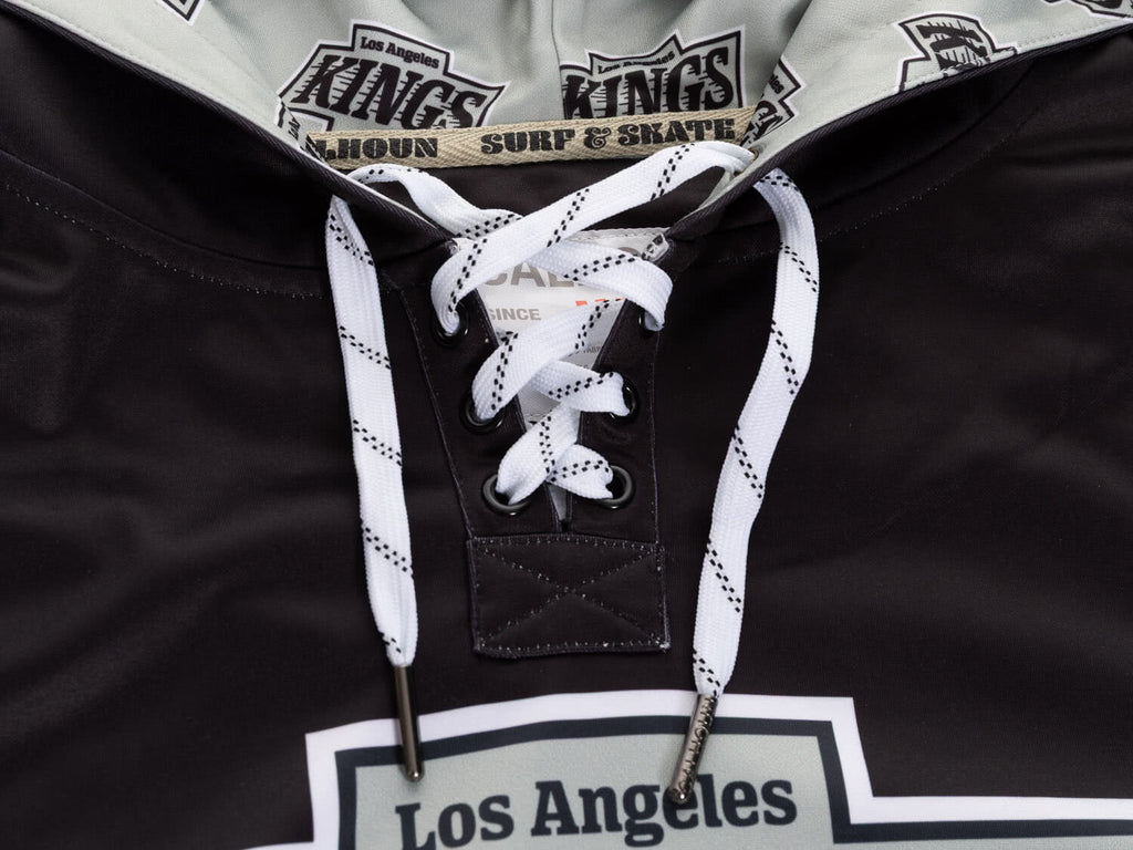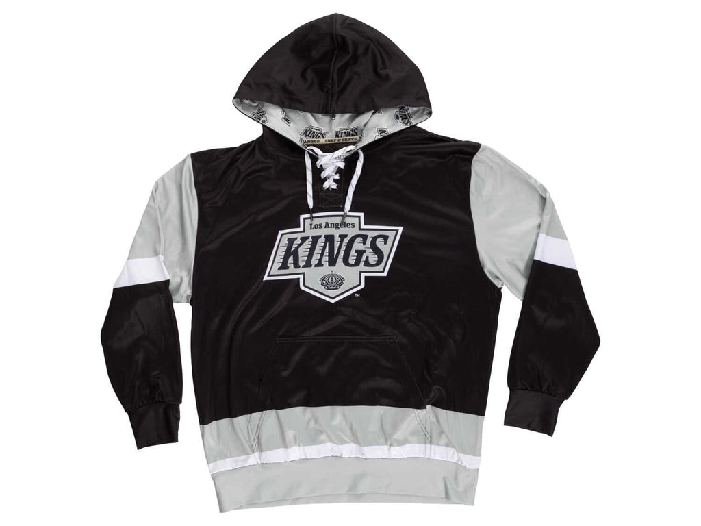 Lace up in style with this Official Licensed NHL Los Angeles Kings Hockey Lace Hoodie. Perfect for game days, casual outings, or showing team pride, this hoodie combines bold design elements with iconic Kings branding for fans who want to stand out. The hockey lace detail at the neck adds a sporty touch, making it a must-have addition to any fan’s wardrobe.
