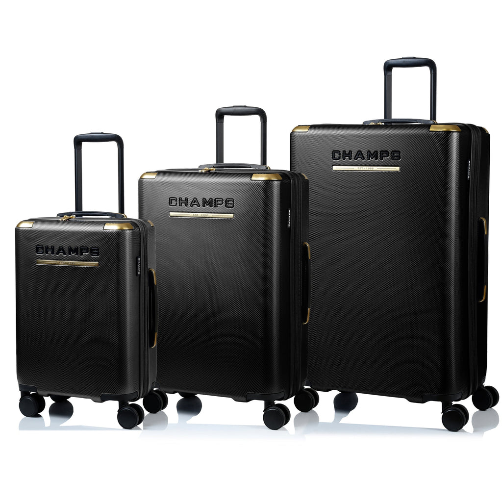 The Luxe II Collection is a sophisticated 3-piece luggage set, including a Carry-on, Medium check-in bag, and Large check-in bag. Designed for discerning travelers, each piece combines luxurious matt gold accents, corner protectors, and premium lightweight polycarbonate construction for durability and elegance. Smooth spinner wheels and recessed TSA-approved locks ensure effortless and secure travel, while multiple pockets and a built-in USB port in the Carry-on provide convenience and organization.