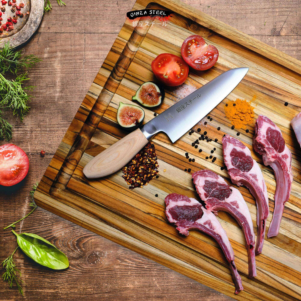 All-purpose Santoku knife suitable for vegetables, meats, and fish