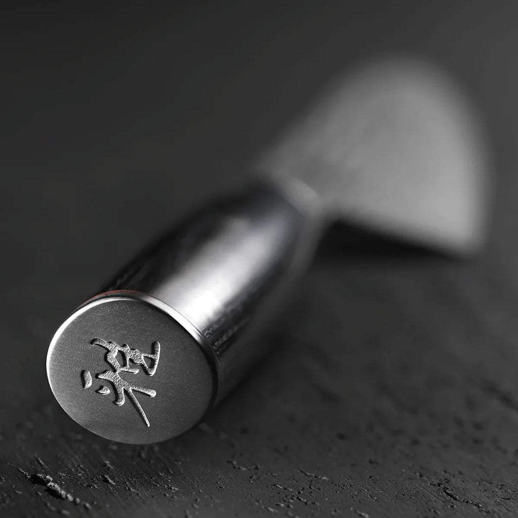 The FC61 fine carbide steel core delivers remarkable sharpness and durability, while the 48-layer Damascus cladding adds strength and a stunning visual texture. Honed using the traditional Honbazuke process, the blade features an ultra-sharp edge of approximately 9.5–12° per side. Complemented by an ergonomic D-shaped black pakkawood handle with a mosaic pin and stainless steel end cap, the knife offers perfect balance and lasting comfort during extended use.