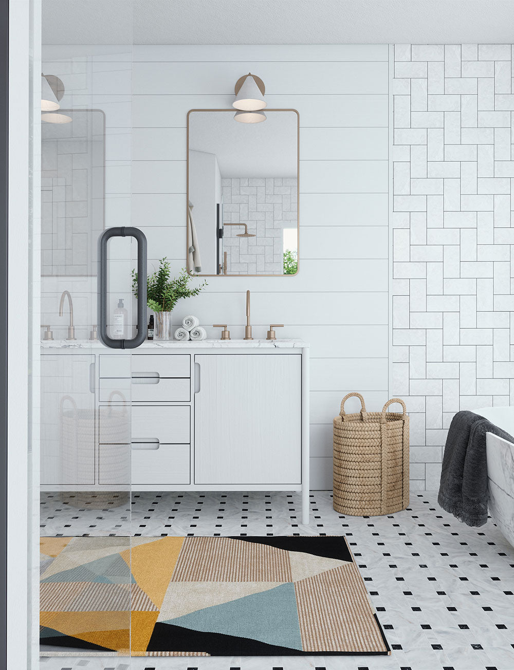 Modern Geometric Design: Unique color mix of yellow, black, beige, and grey for a contemporary look