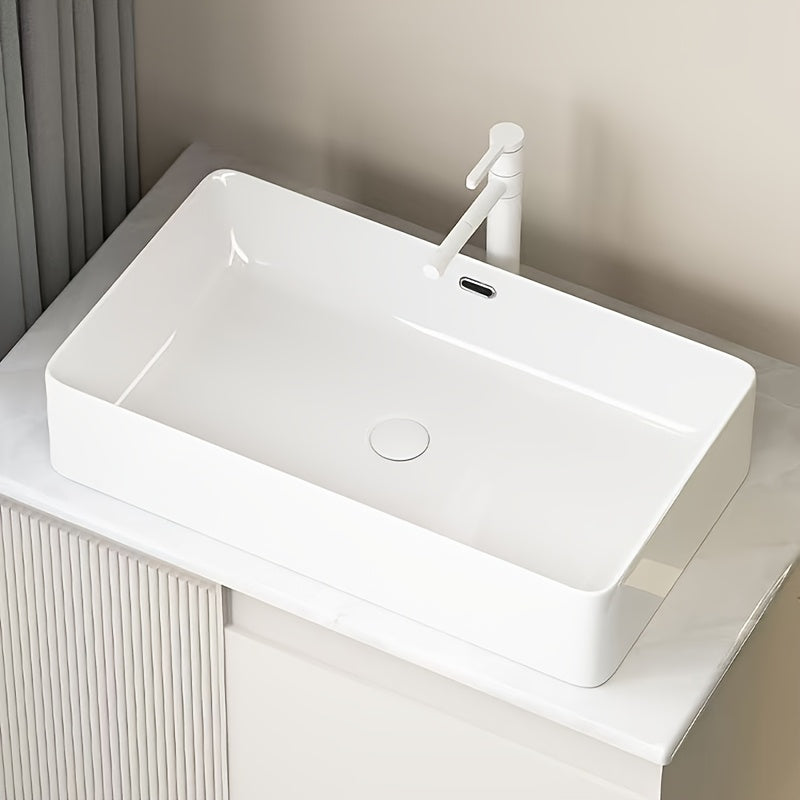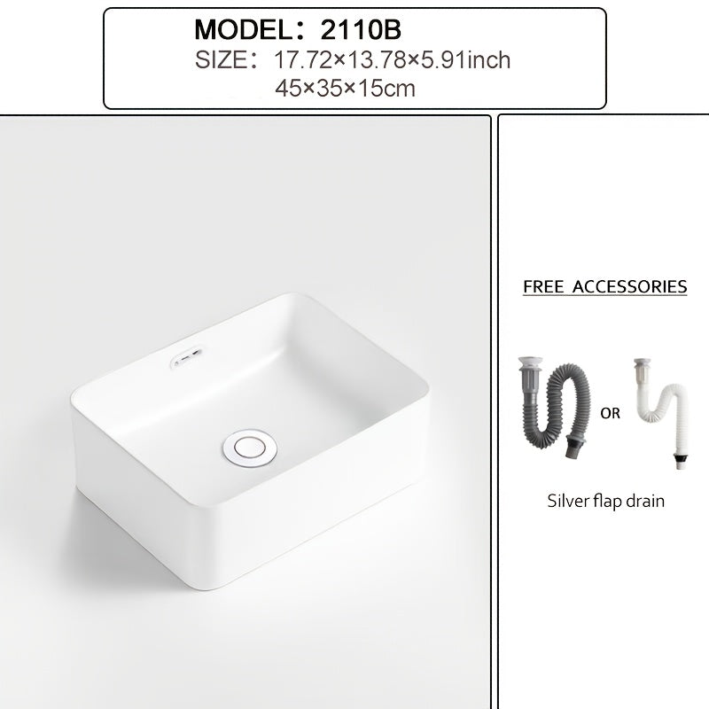 - Rectangular Countertop Basin with Black Faucet for Home, Hotel, or Bathroom