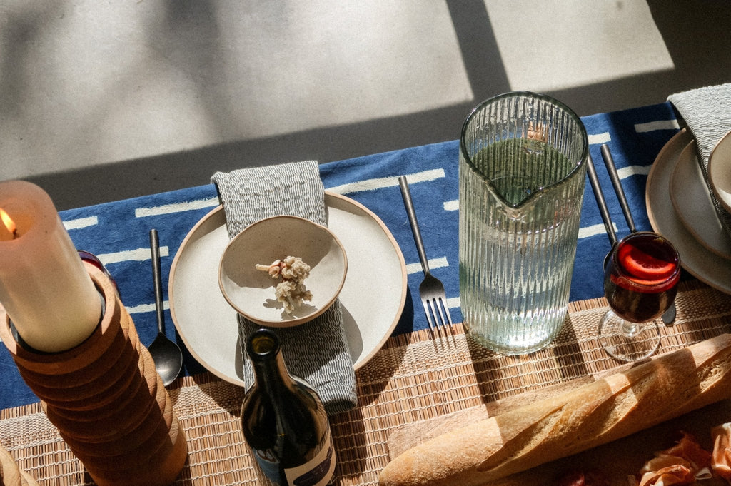 Inspired by the calm clarity of ocean mornings, the Montauk Pitcher adds ease and elegance to any table. Hand-blown with a vertical ribbed pattern, it catches the light like rippling water, while the woven cane handle adds organic texture. Ideal for serving chilled beverages, styling with branches, or adding a beachy, refined touch to your tabletop, this pitcher transforms everyday moments into something special.
