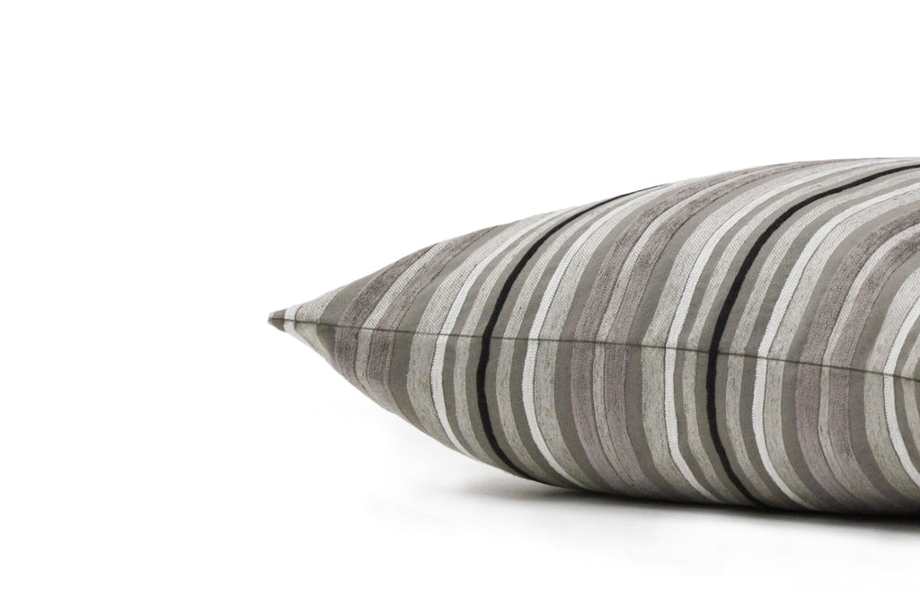 Elevate your living space with the Moonstone Cushion Cover, featuring a refined black and grey striped design that adds depth and texture to any room. Perfect for styling on a sofa, armchair, or bed, this limited-edition cover offers a sophisticated touch while enhancing comfort. Expertly hand-made in Canada with premium blended fabric for a smooth and durable finish.
