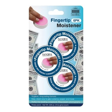 - 6-pack of fingertip moistener pads for smooth cash handling