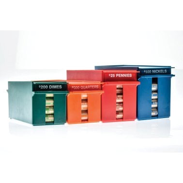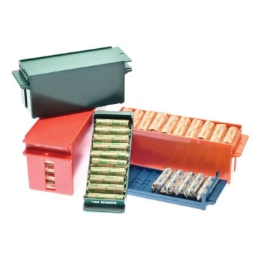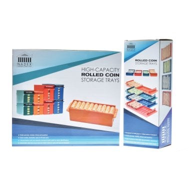 The Nadex Coins™ Rolled Coin Storage Boxes and Trays, 8-Piece Set, offers an organized and efficient way to store your rolled coins. Designed for coin collectors, businesses, and anyone handling large amounts of rolled coins, this set includes various boxes and trays that hold and protect your coins. Made from durable materials, each piece in the set is stackable and easy to use, ensuring that your coins are securely stored and easily accessible. Perfect for keeping your coins in pristine condition while simplifying organization.