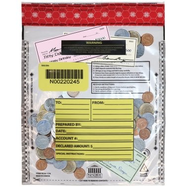 The Nadex Coins™ Tamper-Evident 9-In. x 12-In. Clear FRAUDSTOPPER® Bank Deposit Bags (500 Pack) offer a secure and reliable solution for protecting cash and valuables during transportation and storage. These high-quality, clear plastic bags feature tamper-evident technology, ensuring that any unauthorized access is immediately noticeable. Designed for use by businesses, banks, or individuals, these 9-inch by 12-inch bags are perfect for bank deposits, retail transactions, or secure storage. With a convenient 500-pack, they provide excellent value while helping maintain the safety and integrity of your cash.