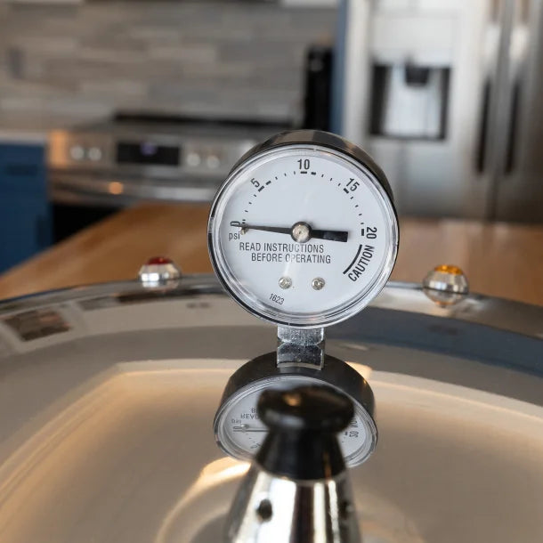 • Pressure Gauge: Clear, easy-to-read gauge for monitoring the pressure level throughout the canning process.