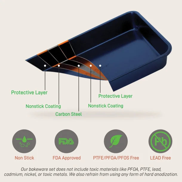 The NutriChef Kitchen Oven Baking Pans are essential for any home baker, offering a perfect blend of durability and convenience. These versatile baking pans are crafted from high-quality carbon steel with a nonstick coating, ensuring even heat distribution and easy food release. Ideal for baking cookies, cakes, bread, and more, these pans are designed to handle a variety of recipes with ease. Their nonstick surface reduces the need for oils and makes cleanup effortless, while the sturdy construction resists warping and ensures long-lasting performance. Whether you're baking for a family gathering or a quiet night at home, NutriChef baking pans deliver reliable results every time.