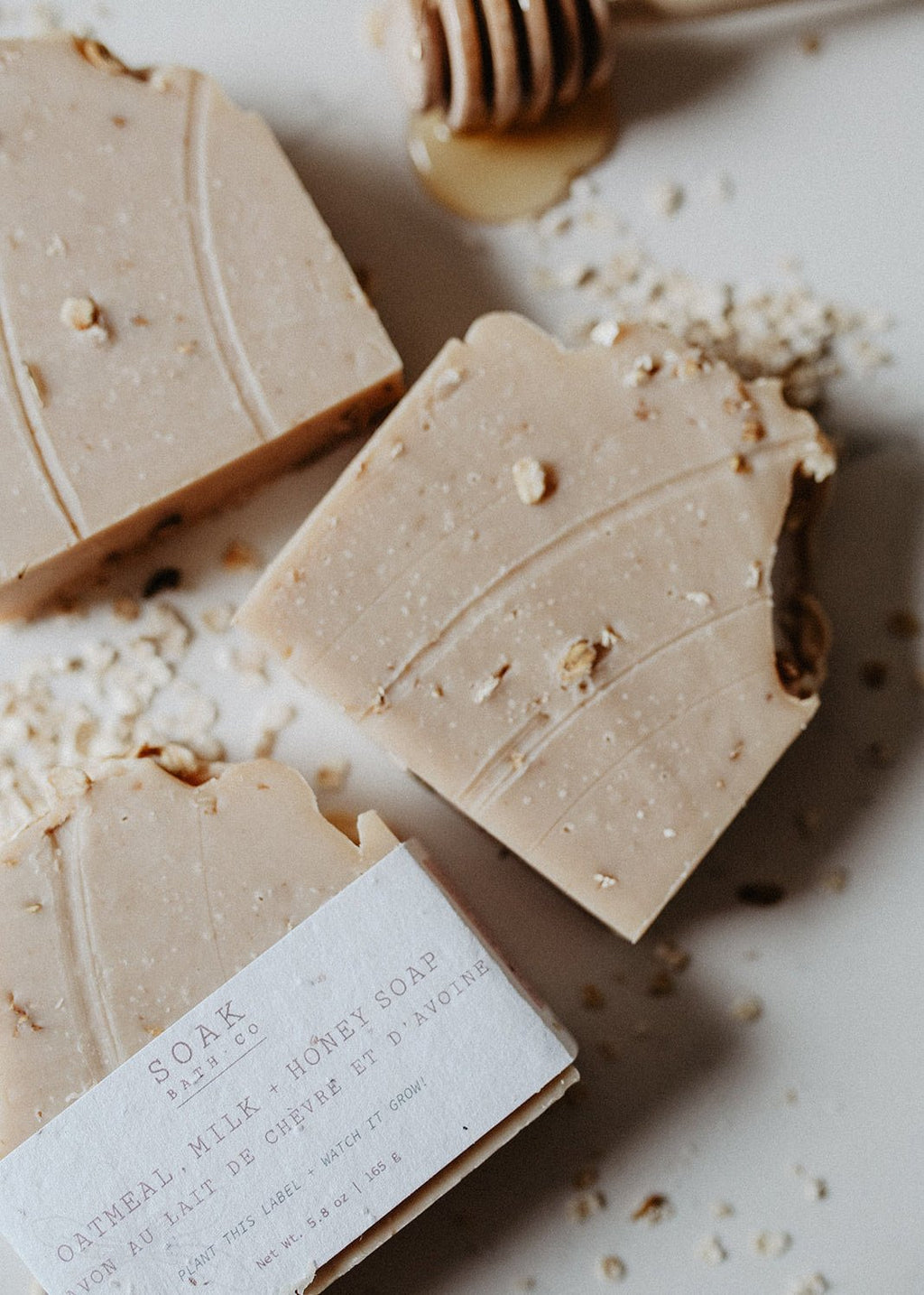 Indulge in the cozy, soothing experience of the Oatmeal, Milk & Honey Soap Bar. Infused with goat’s milk, shea butter, and whole oats, this gentle soap nourishes, hydrates, and lightly exfoliates your skin. Its sweet, fruity scent with playful flecks of pink and deep rose transforms your bath or shower into a moment of self-care. Complete with a biodegradable, plantable seed paper label, it’s a sustainable, thoughtful gift that keeps on giving. Perfect for body, hands, and even the face.