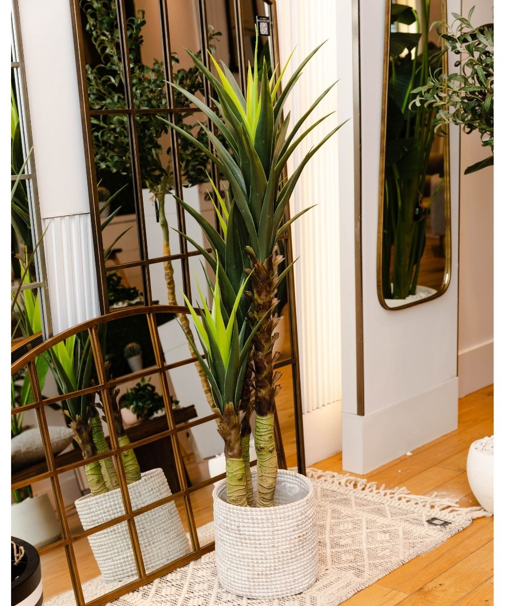 The Oca Artificial Century Potted Plant by ArtiPlanto captures the bold elegance of the agave with lifelike detail and modern style. Standing an impressive 63 inches tall, this handcrafted faux plant showcases meticulously shaped, spiny leaves that replicate the natural beauty and texture of a real agave. Designed by ArtiPlanto’s expert artisans in Montreal and New York, every millimeter is crafted for realism using premium-quality materials. The Oca plant adds a touch of desert sophistication to any living space, patio, or office—without the need for watering or sunlight. Pair it with your favorite ArtiPlanto basket or planter for a stunning statement piece that stays fresh and vibrant all year long.