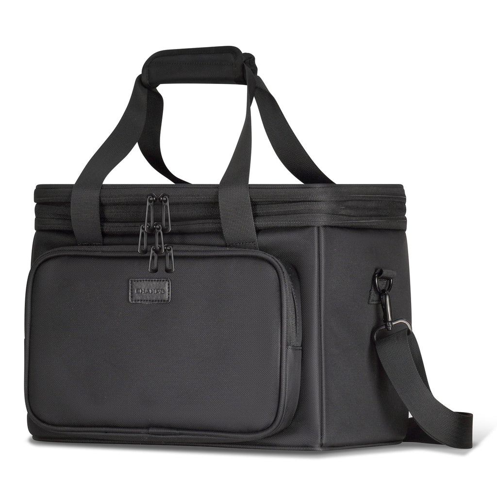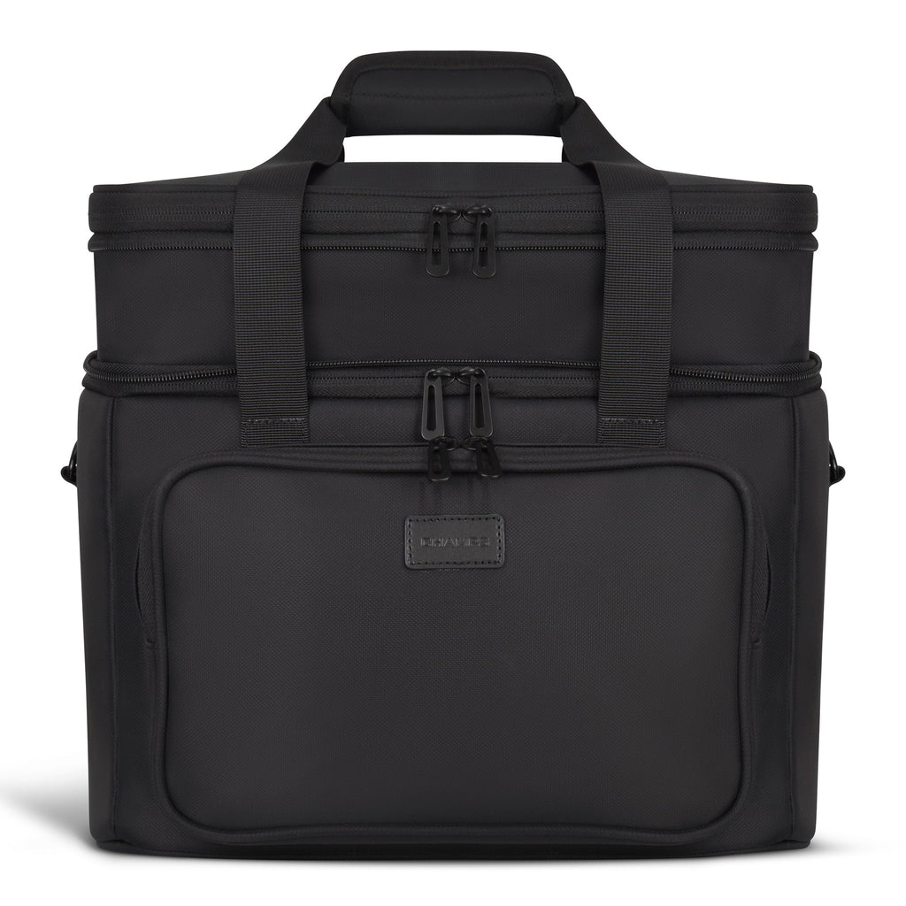 The Onyx Collection Cooler Bag is designed for outdoor enthusiasts who want to keep food and drinks cold on road trips, camping excursions, or for everyday use. Constructed from premium water-resistant nylon, this cooler combines durability with a sleek, modern appearance. Premium insulation technology keeps contents colder for longer, while dual wide-mouth compartments maintain item separation and freshness. Additional storage is provided by a front zipper pocket and interior mesh pockets for smaller items. A built-in expansion feature allows for extra packing when needed. The removable, adjustable padded shoulder strap and top carry handle make transport easy and comfortable, making this cooler bag a practical and stylish choice for any outdoor adventure.