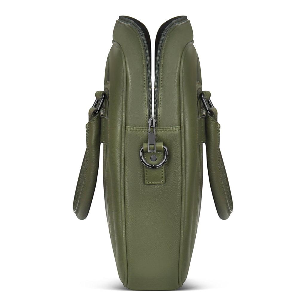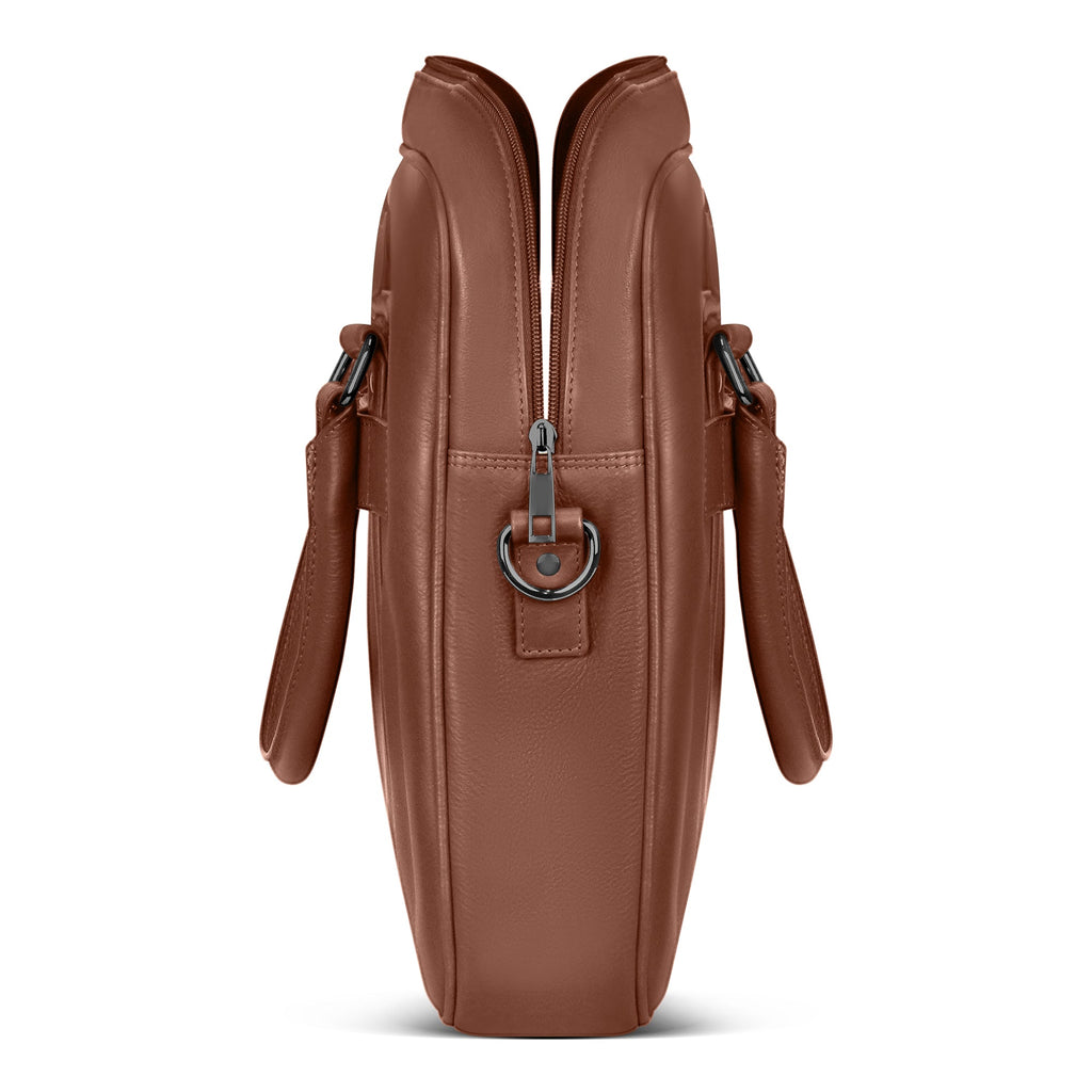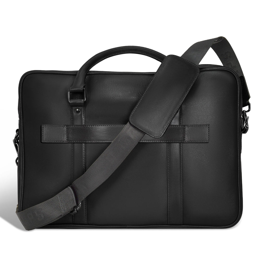 The Onyx Collection Slim Briefcase combines elegant design with practical functionality. Crafted from premium top-grain leather, it fits a 15.6-inch laptop, includes a separate tablet compartment, RFID pocket, inner keychain, and multiple slip pockets—perfect for professionals on the go.