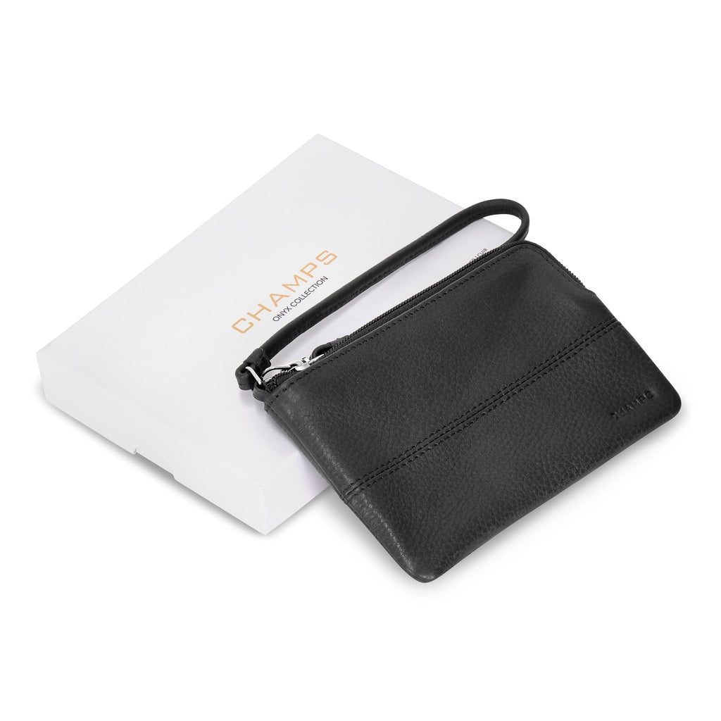 The Onyx Leather Wristlet combines elegance and practicality in a compact, stylish design. Crafted from premium top-grain leather, it features a secure top-zip closure, dedicated credit card slots, and a minimalist silhouette—perfect for carrying alone or inside a larger bag. Packaged in a chic gift box, it’s a sophisticated leather essential.