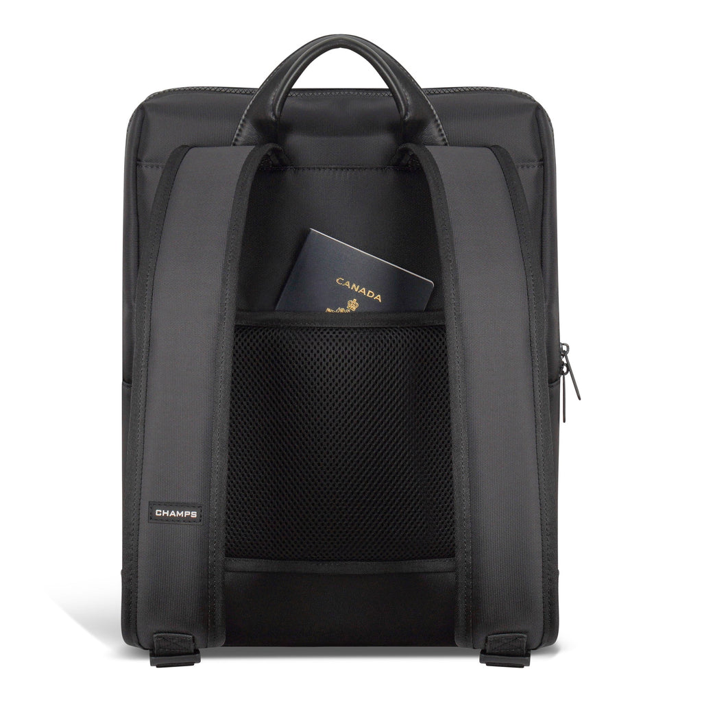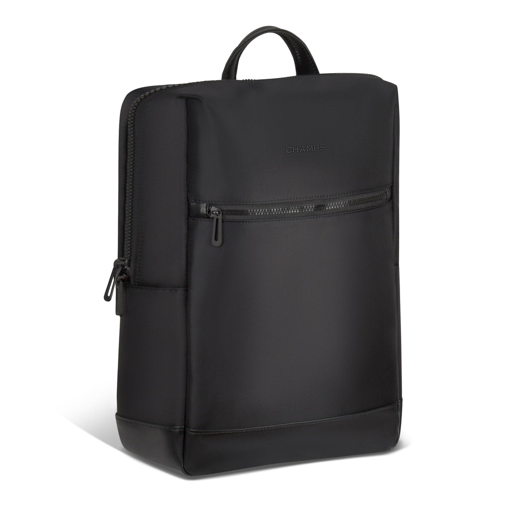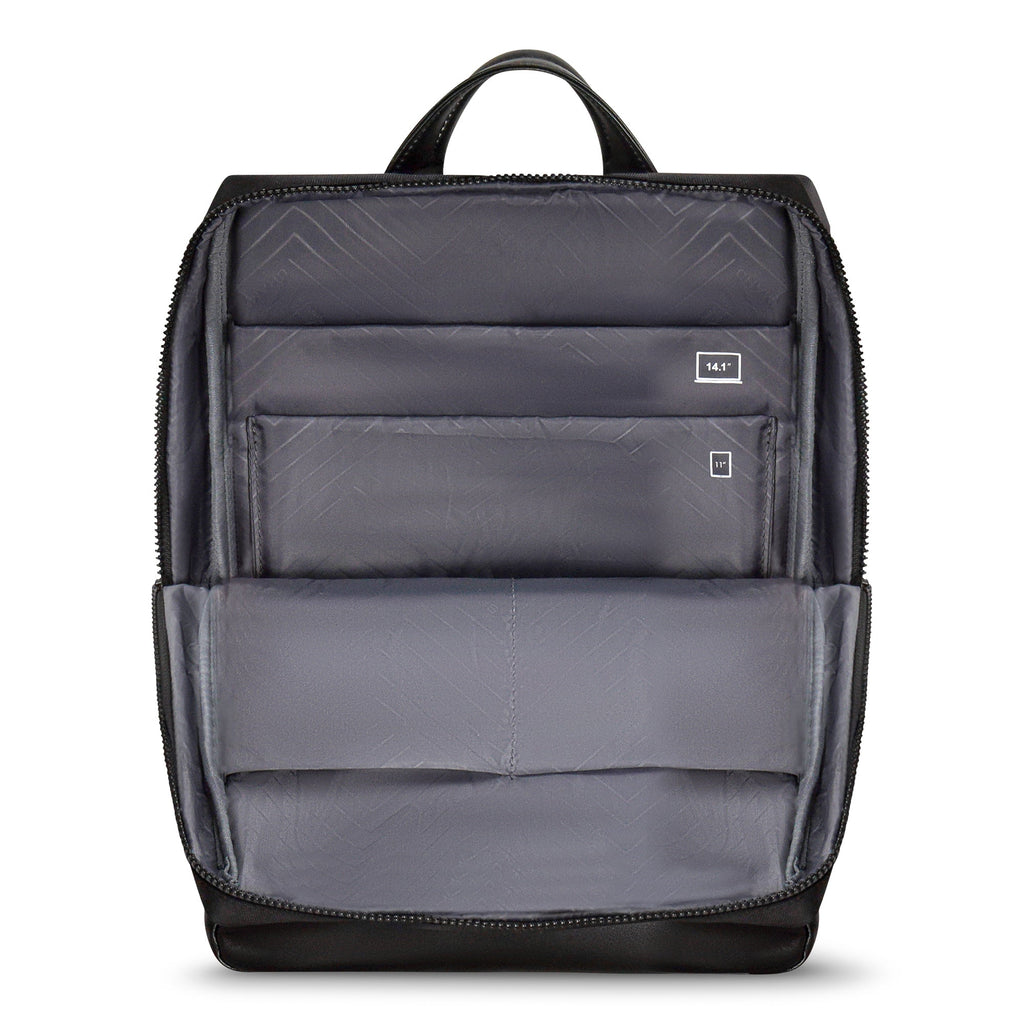 The Onyx Collection Modern Backpack offers a compact yet feature-packed solution for daily use and travel. Made from water-resistant nylon, it provides durability and style while keeping your essentials secure. The backpack includes a padded 14.1" laptop and tablet sleeve, RFID-protected pocket, adjustable air-mesh shoulder straps, USB-C charging port, trolley strap, hidden zippered pocket, and inner removable key chain, combining convenience, comfort, and protection in a sleek, modern design.