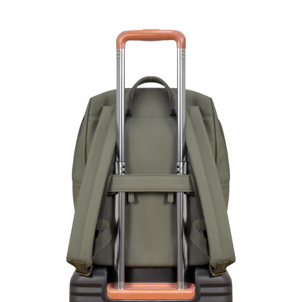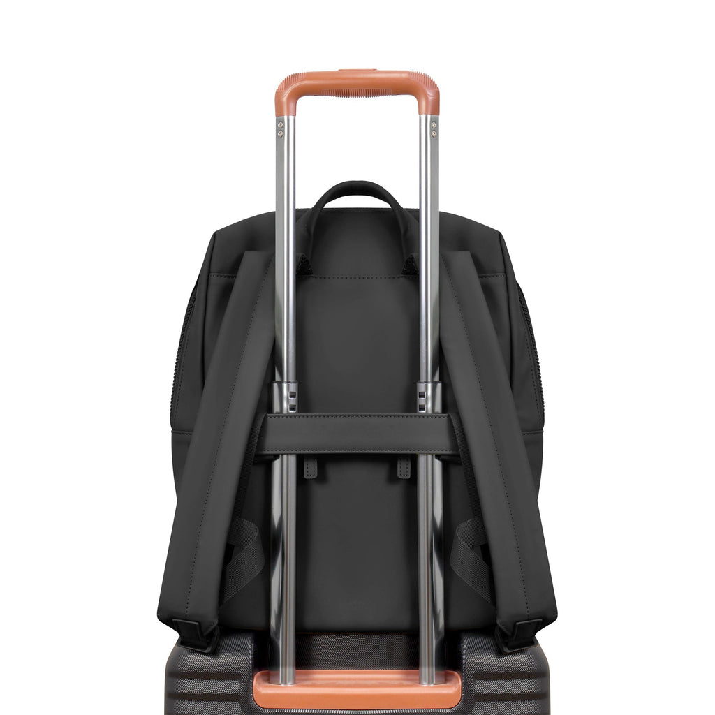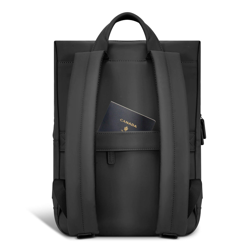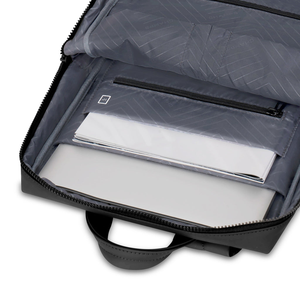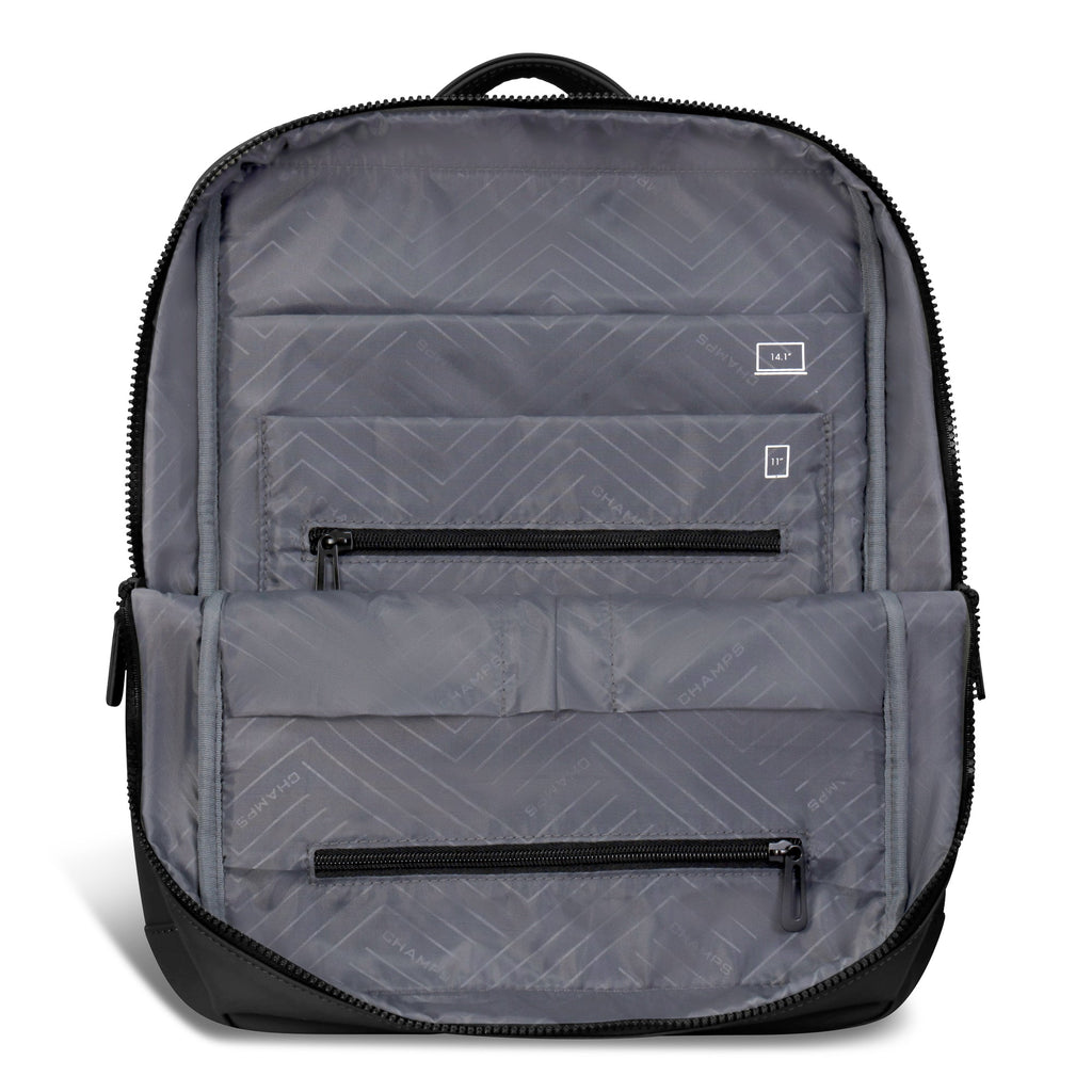 The Modern II Backpack from the Onyx Collection is the ultimate compact backpack for daily use and travel. Crafted from water-resistant PU material, it combines durability with a sleek, modern look. The backpack features a secure RFID pocket to protect your sensitive information and adjustable air-mesh shoulder straps for maximum comfort and airflow during all-day wear. A padded 14.1" laptop and tablet sleeve with compression strap closure keeps your devices safe, while the built-in USB-C charging port ensures you stay powered on-the-go. Effortlessly attach the backpack to your carry-on luggage with the trolley strap, and safeguard your valuables with a discreet zippered pocket located behind it. The inner removable key chain ensures your keys are always within reach. Compact yet feature-rich, the Modern II Backpack is perfect for those who want style, convenience, and practicality in a single backpack.